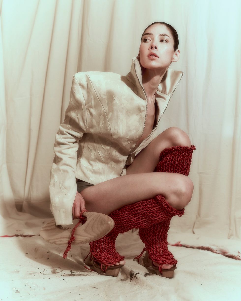 So I pushed myself with the internal structure as much as the external. They feel amazing to wear but still hit hard visually. Some of the shapes are so severe you definitely can’t sit in them, which is fine. I don’t need to sit. And the girls who wear this shouldn’t have to sit. The shoes are so intense that the models’ knees were buckling, but once they were on, the girls stood. You feel it when you wear them.