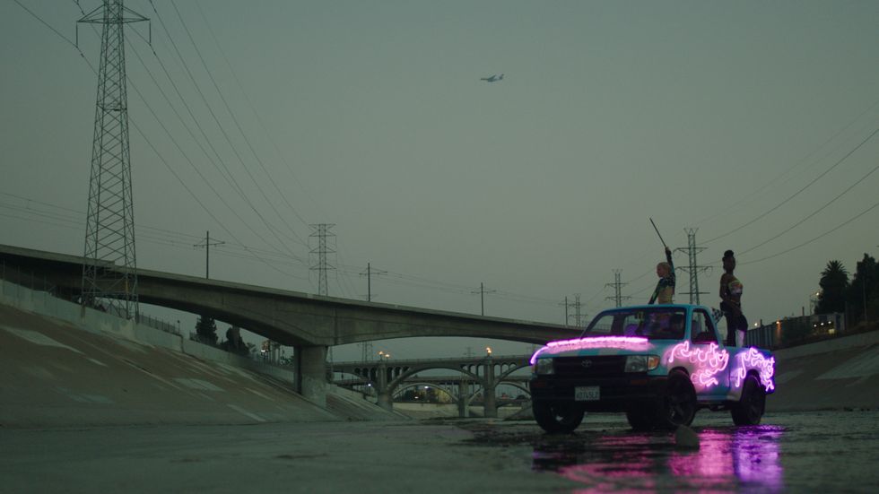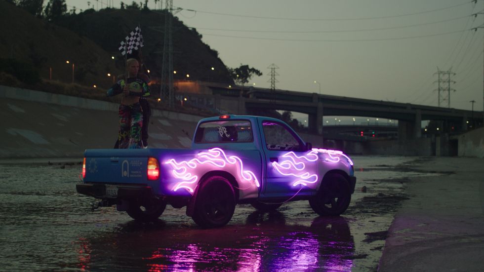 Bikinied girls in heels typically only appear near pick-up trucks in country music videos (like the kind Maddie & Tae famously parodied), during car wash scenes in early '00s bro comedies, or in '50s Chevrolet ads. Rarely, if ever, are they in the driver's seat. Like guns, pick-up trucks are one of American pop culture's most cliché symbols of masculinity and regressive conservatism, which despite the reality of the diverse people who drive the vehicles in real life, instantly evokes a certain kind of MAGA-hatted driver.