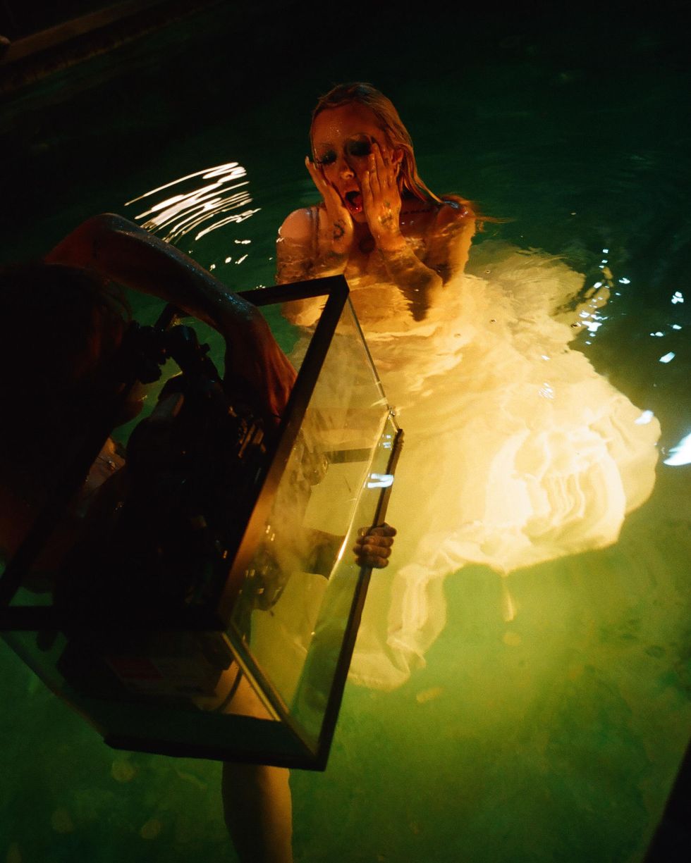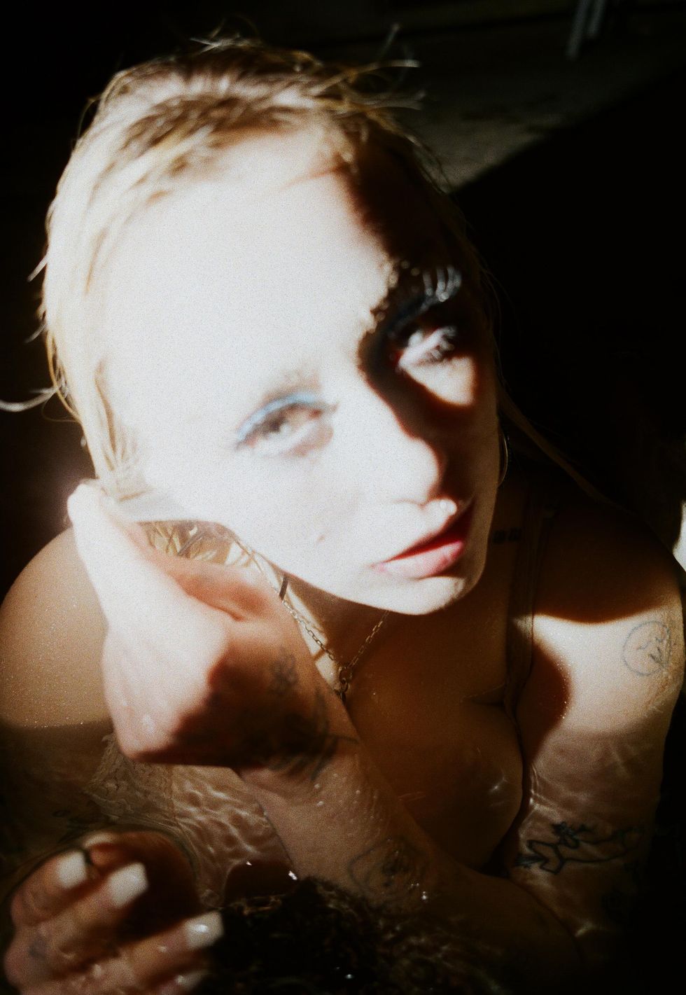 Despite how engaging our exclusive behind-the-scenes photos are, the actual Aerin Moreno-directed video is a grainy, dissociative visual that hammers home the angst, loss and hopelessness that comes with begging someone to love you back. Positioning bandmate Avery Tucker as a disinterested partner who cozies up to other women at a party, a heavily-made up Tividad is virtually unrecognizable in attention-grabbing prosthetics.
