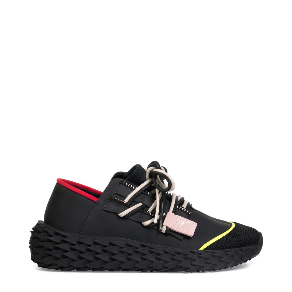 Giuseppe Zanotti is known for super stylish eye-catching accessories — take the collaboration he did with Christian Cowan for his watch shoes this season, for example. Today Zanotti is launching the Urchin sneaker, a young, urban, playful sneaker with attitude. Think Blade Runner goes to Tokyo.