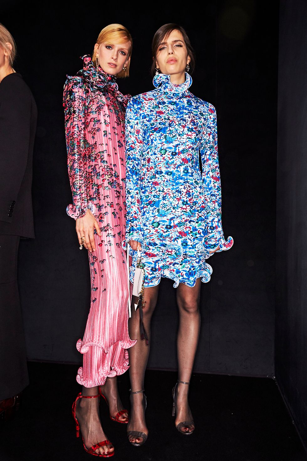 Clare Waight Keller reportedly described Givenchy's fall 2019 theme as "winter of Eden." This season, the designer flexed her muscles in showing she can handle the dynamics of masculine and feminine aesthetics. Here, there were tightly tailored suits and boyish pixie cuts shown alongside floral pleated gowns. Here's everything else you need to know about the collection.