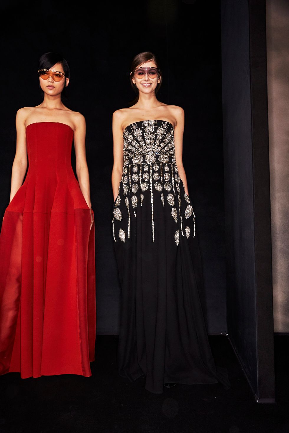 Strapless dresses, off the shoulder tops, assymetrical blouses: in a season where big shoulders are prized, the little bit of exposure here was refreshing.