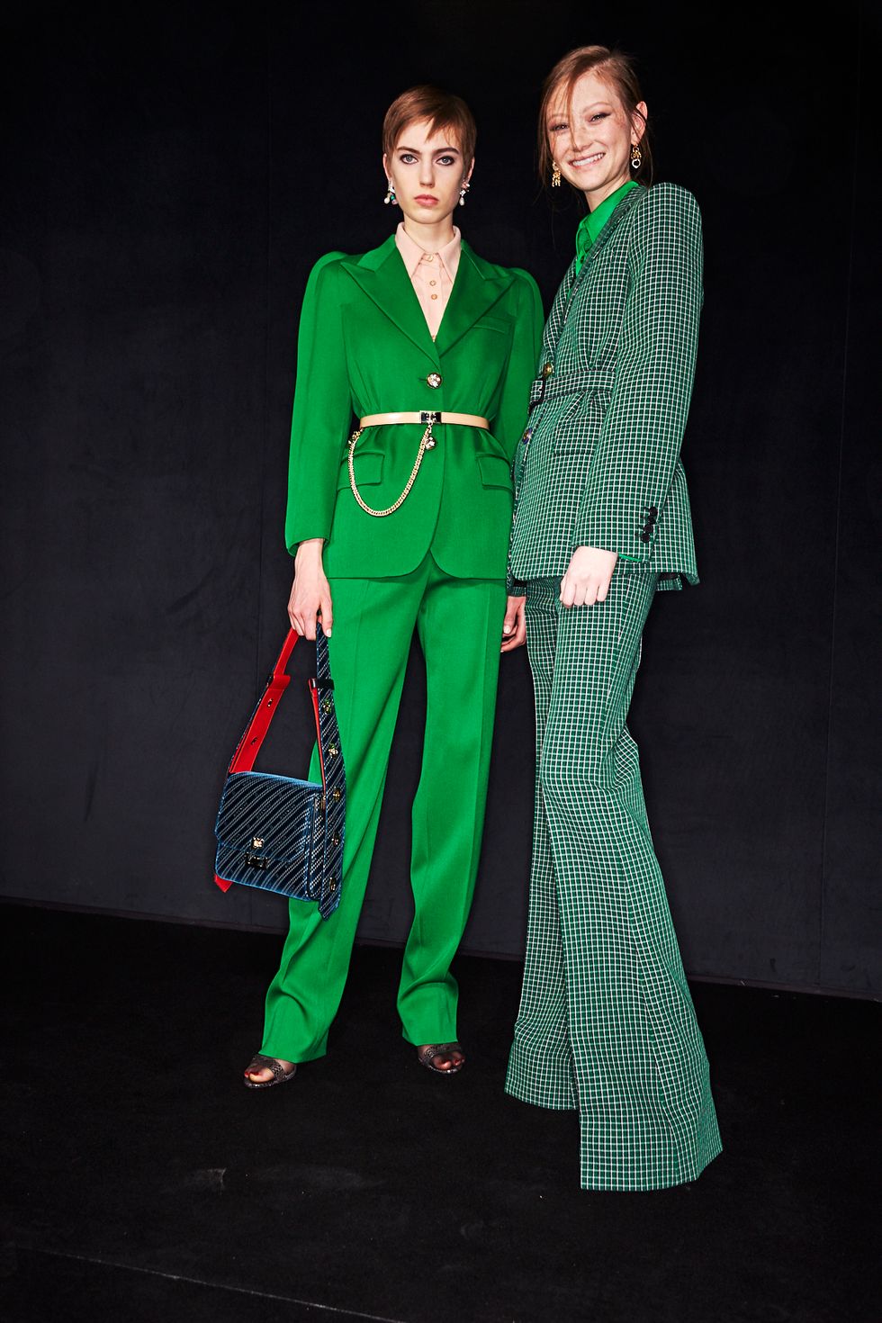 There were a good amount of traditional suits and suit separates in the collection, such as smoking jackets. What kept the classical tailoring modern was the subtle quirks, like one suit rendered entirely in kelly green.