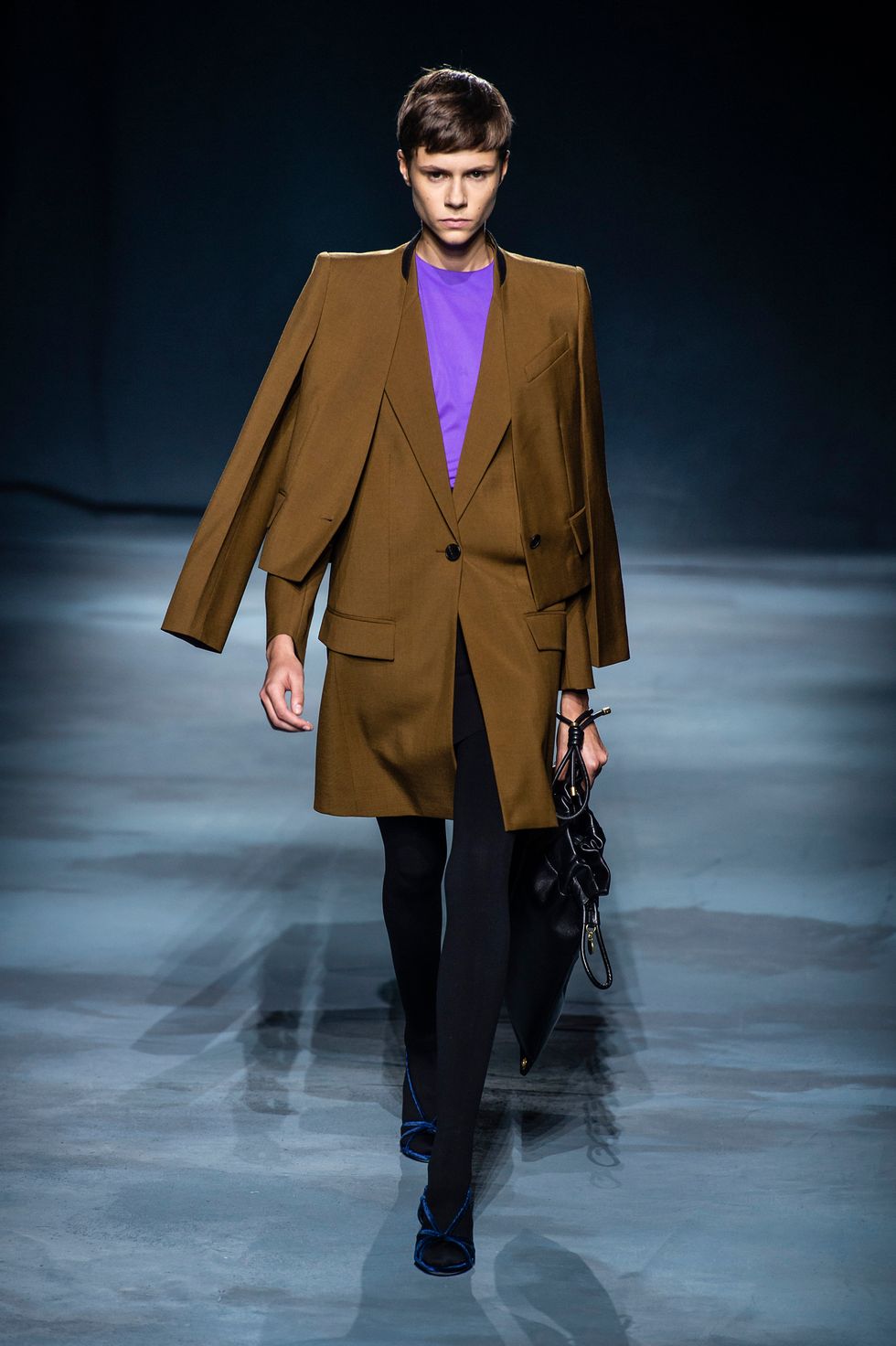 In a move that may have left a few in the crowd worrying about their vision, Keller was seeing double this season. There were perfectly pleated two tone dresses and regal double-breasted jackets, but it was the flailing empty sleeves on blazers layered over another blazer gave the garments a distinctive edge—even if they're not destined to be your new office attire.