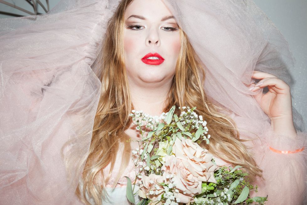 For the finale of Gogo Graham's fall 2019 show, performance artist Leah James walked down the runway in a sunny, airy room on a high floor at the New Museum. James wore a voluminous pink organza wedding dress, a veil streaming down her back. She walked slowly, gasping, clutching at her heart. Blood trickled from her forehead. On the soundtrack, you could hear Graham's voice choking out the words "I love you, I love you, I love you." It was spectacular.
