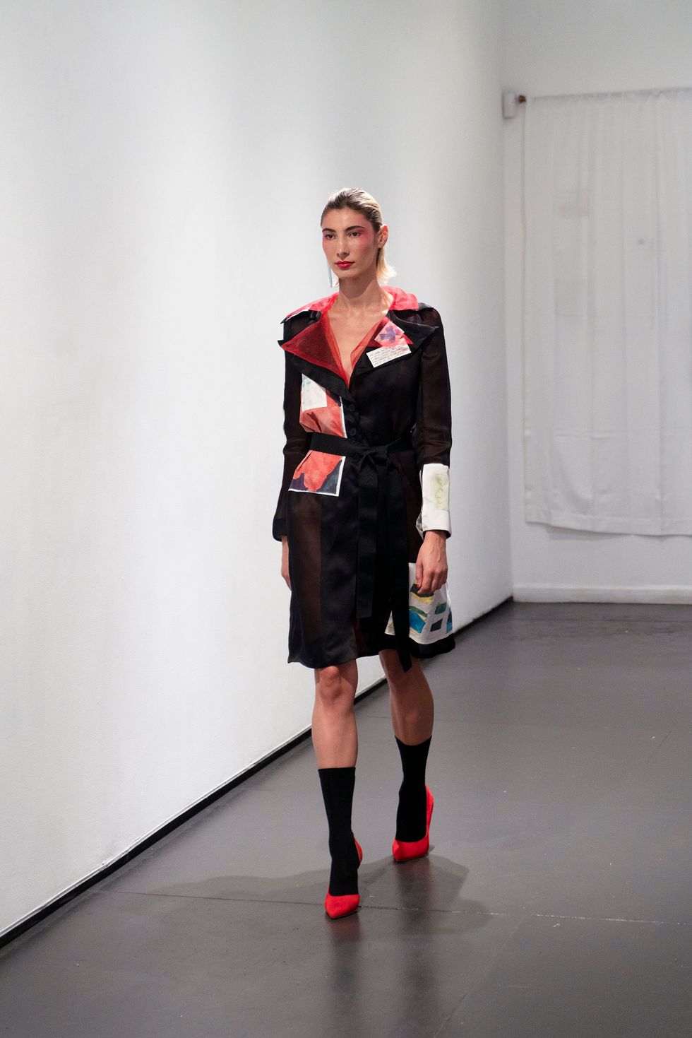 Baldwin also drew his garments on sticky notes, and then cleverly scanned the sticky notes onto the clothes in question. Touches like these were really exciting. We're sure to see much more of his work soon.