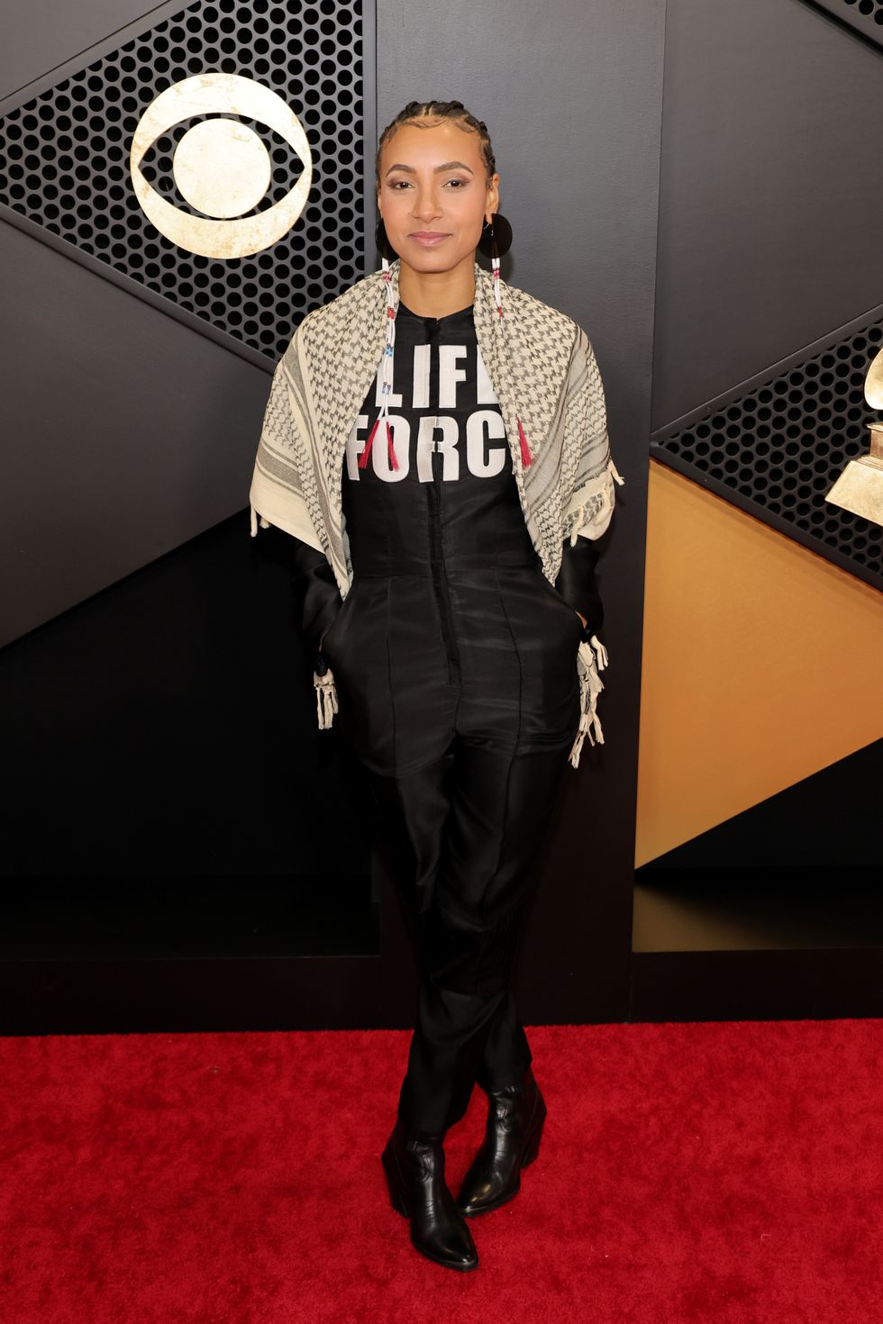 I’d also like to give a brief shoutout to Esperanza Spalding as well. The singer wrapped herself in a keffiyeh. While the outfit wasn’t taken to a place of red carpet fashion, now isn’t really the time to fixate on things like fashion, don’t we all agree?