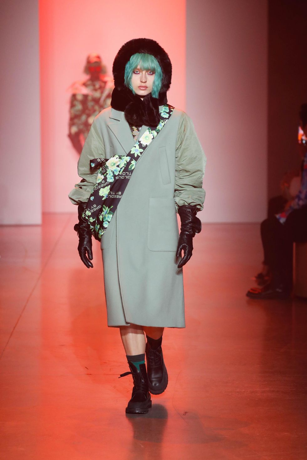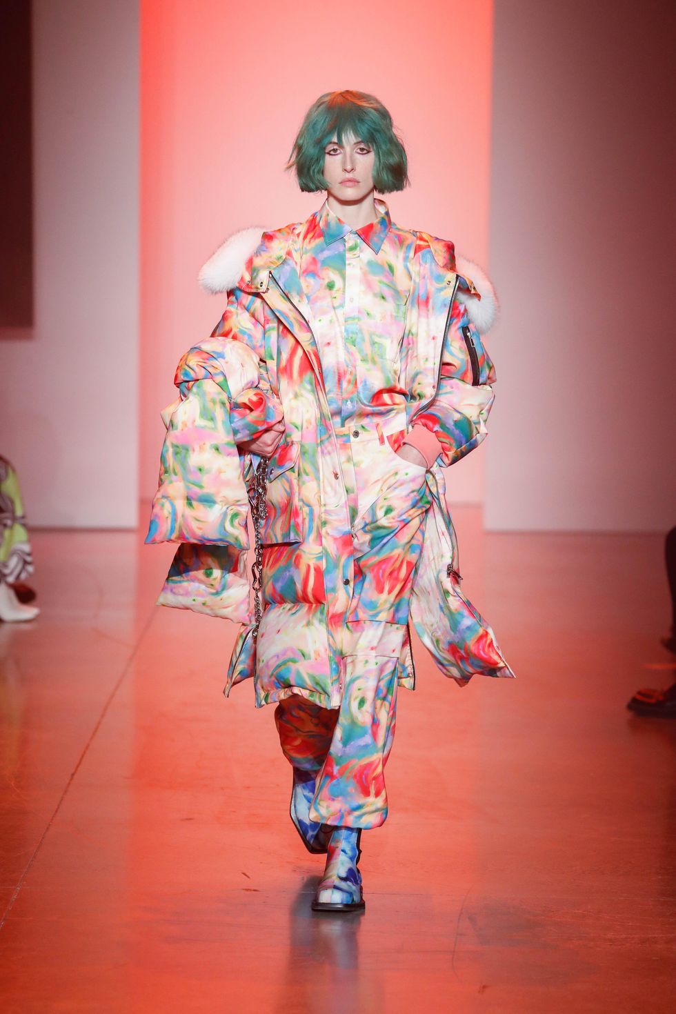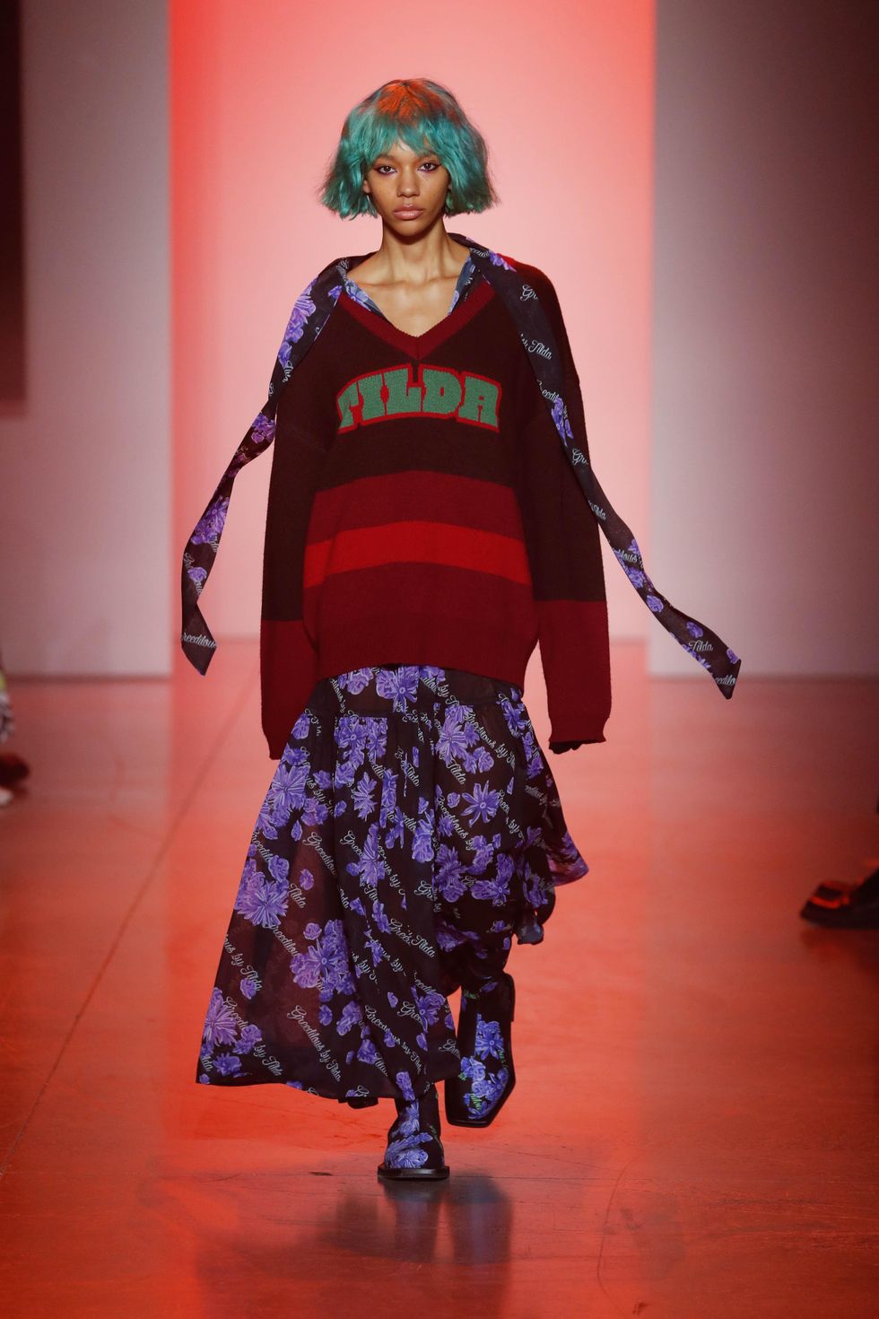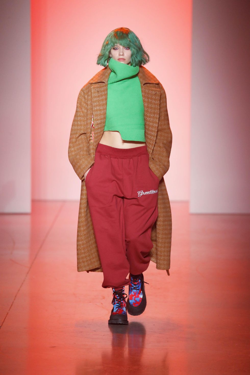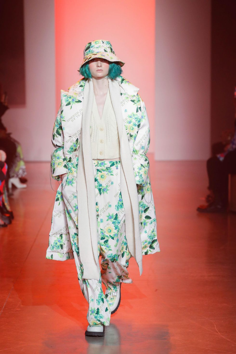 The theme at the heart of Greedilous by Tilda's runway show was humanity and its future. The models all sported wigs that mimicked Tilda's hair, and the garments were all colorful and bold. But while there were a lot of strong and vibrant visual elements, Park made sure to accent the looks with delicate details that added a soft and elegant touch.