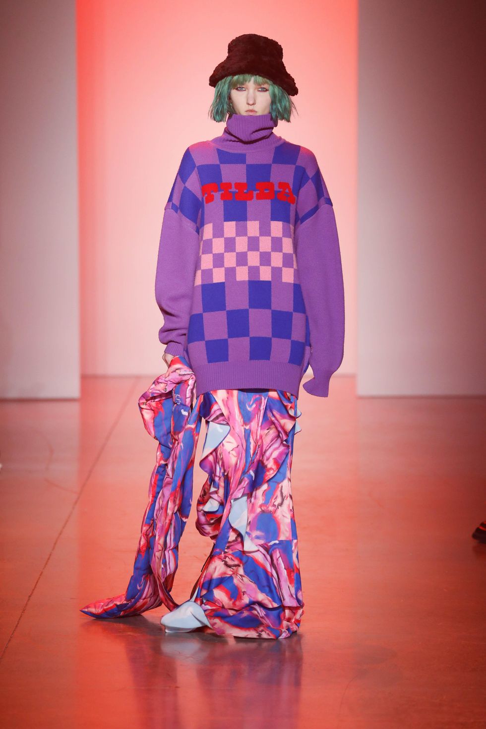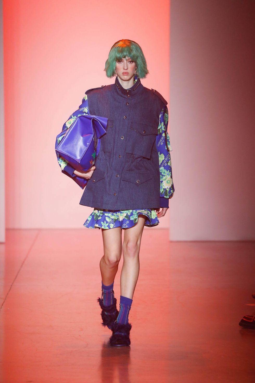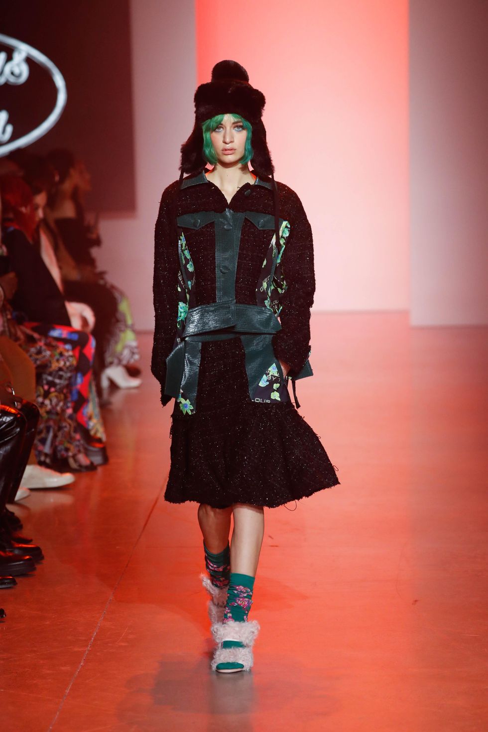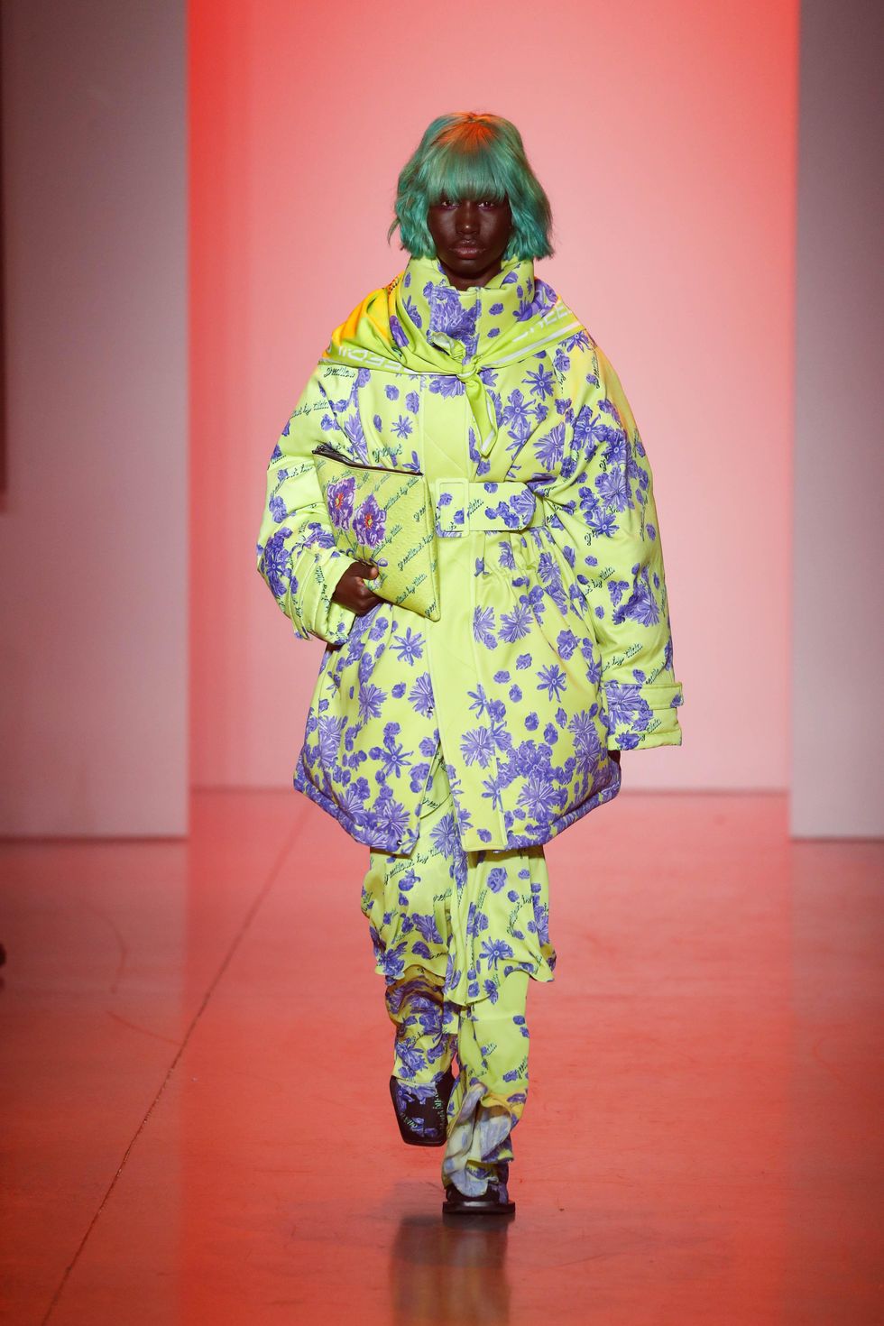 The theme at the heart of Greedilous by Tilda's runway show was humanity and its future. The models all sported wigs that mimicked Tilda's hair, and the garments were all colorful and bold. But while there were a lot of strong and vibrant visual elements, Park made sure to accent the looks with delicate details that added a soft and elegant touch.