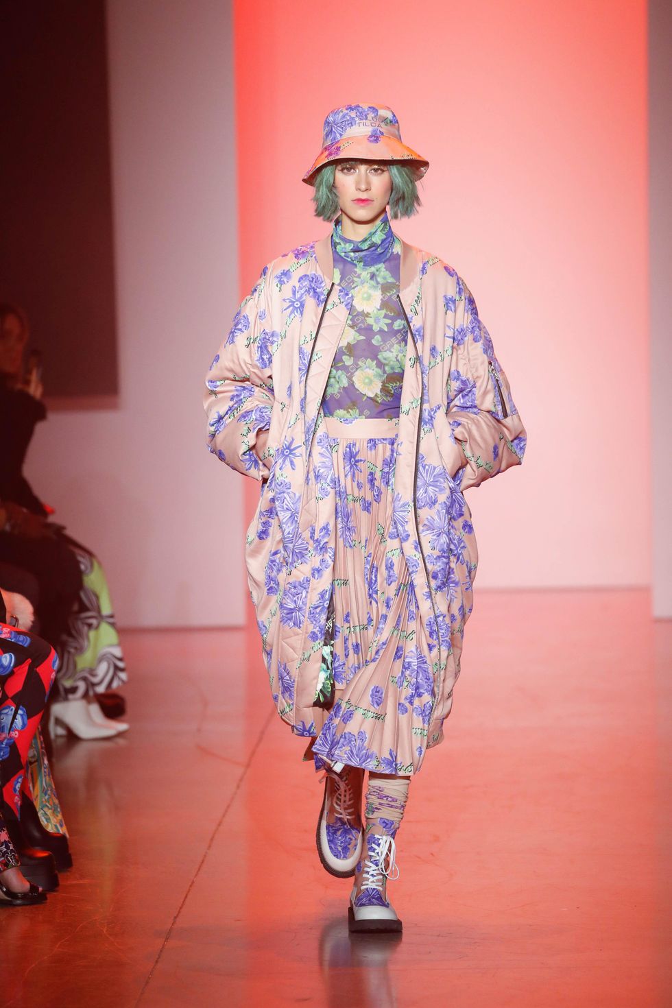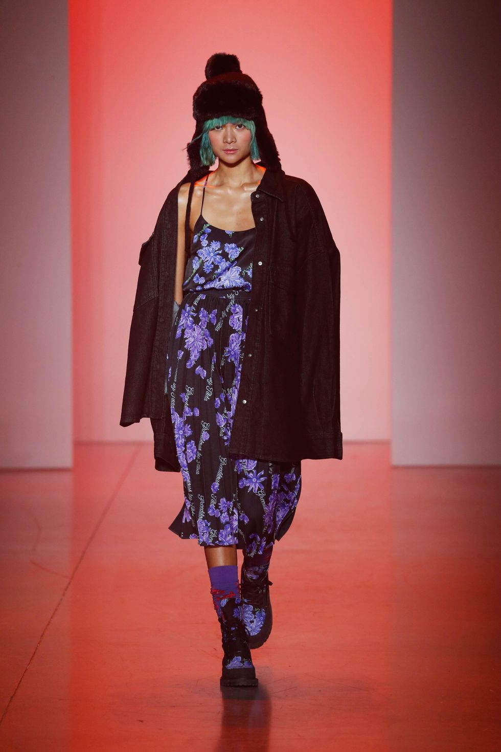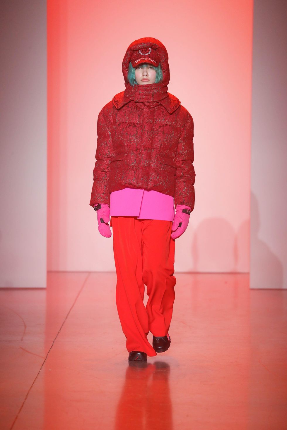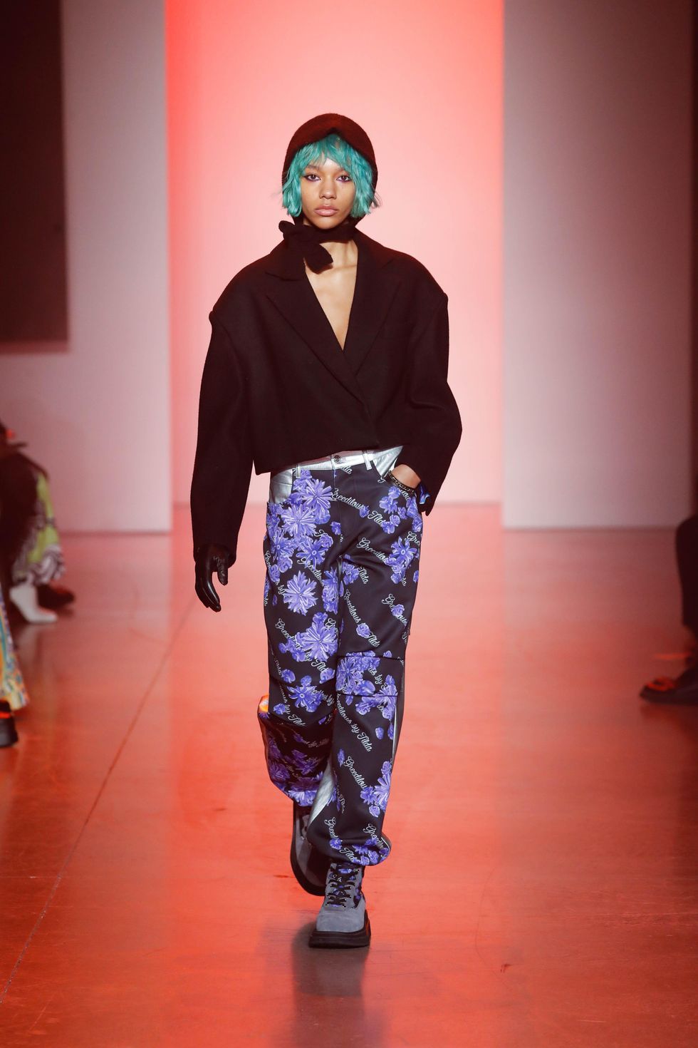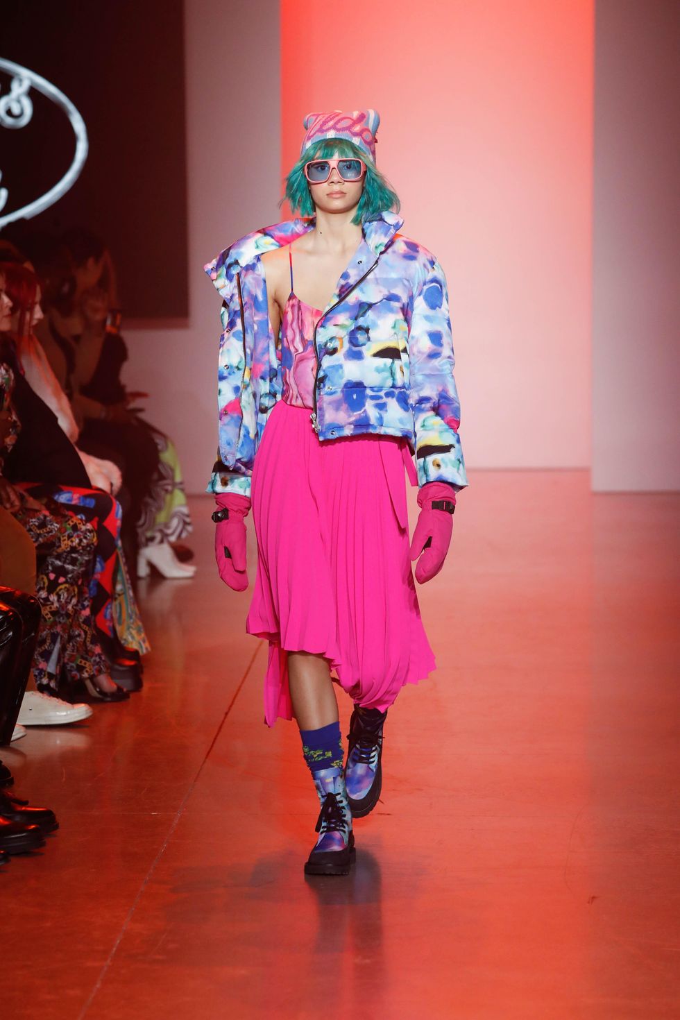 The theme at the heart of Greedilous by Tilda's runway show was humanity and its future. The models all sported wigs that mimicked Tilda's hair, and the garments were all colorful and bold. But while there were a lot of strong and vibrant visual elements, Park made sure to accent the looks with delicate details that added a soft and elegant touch.