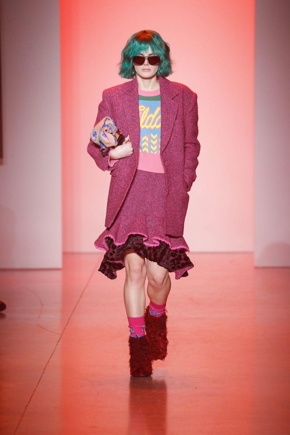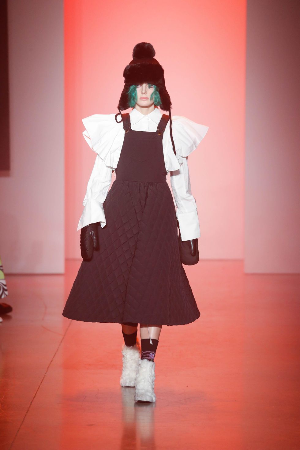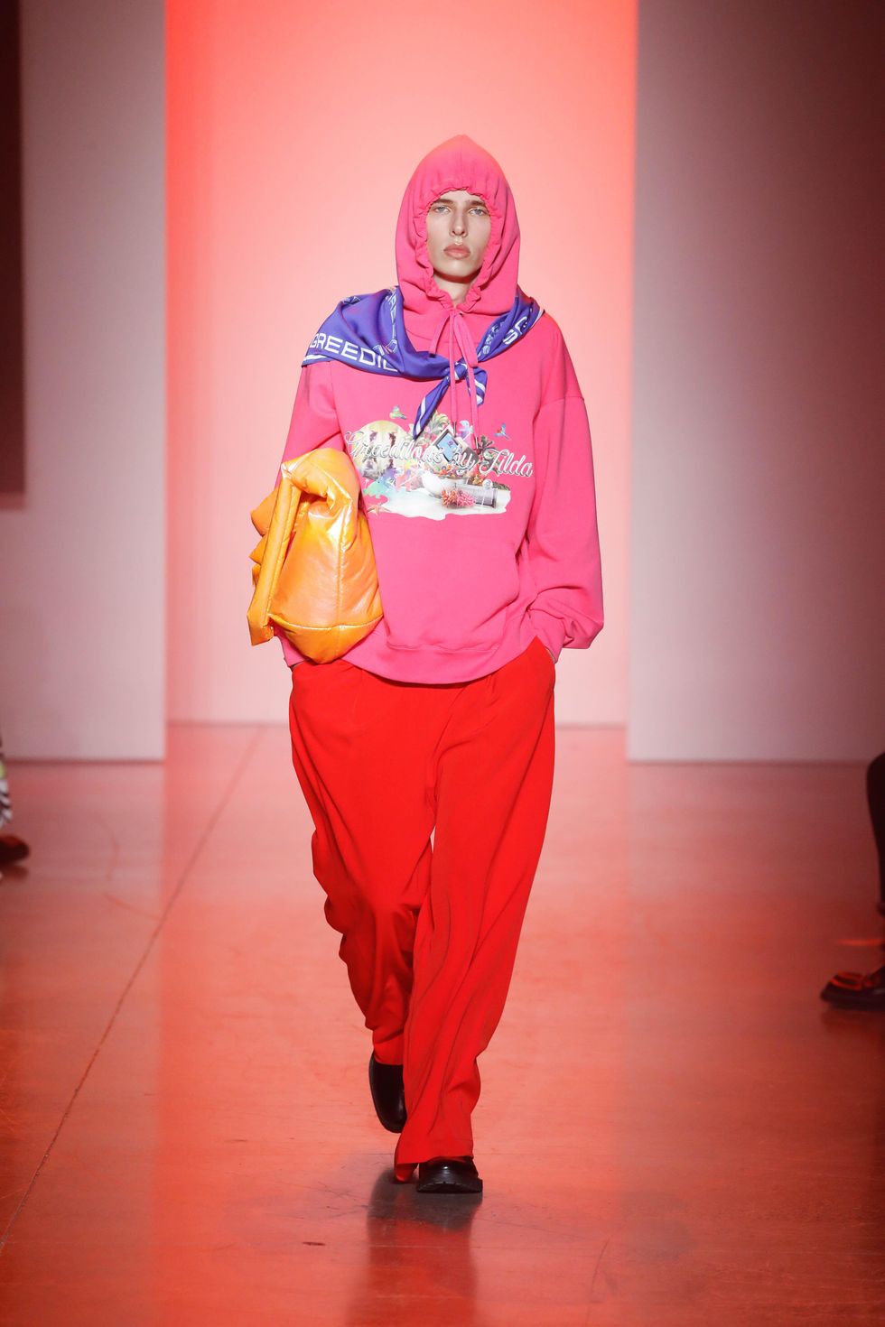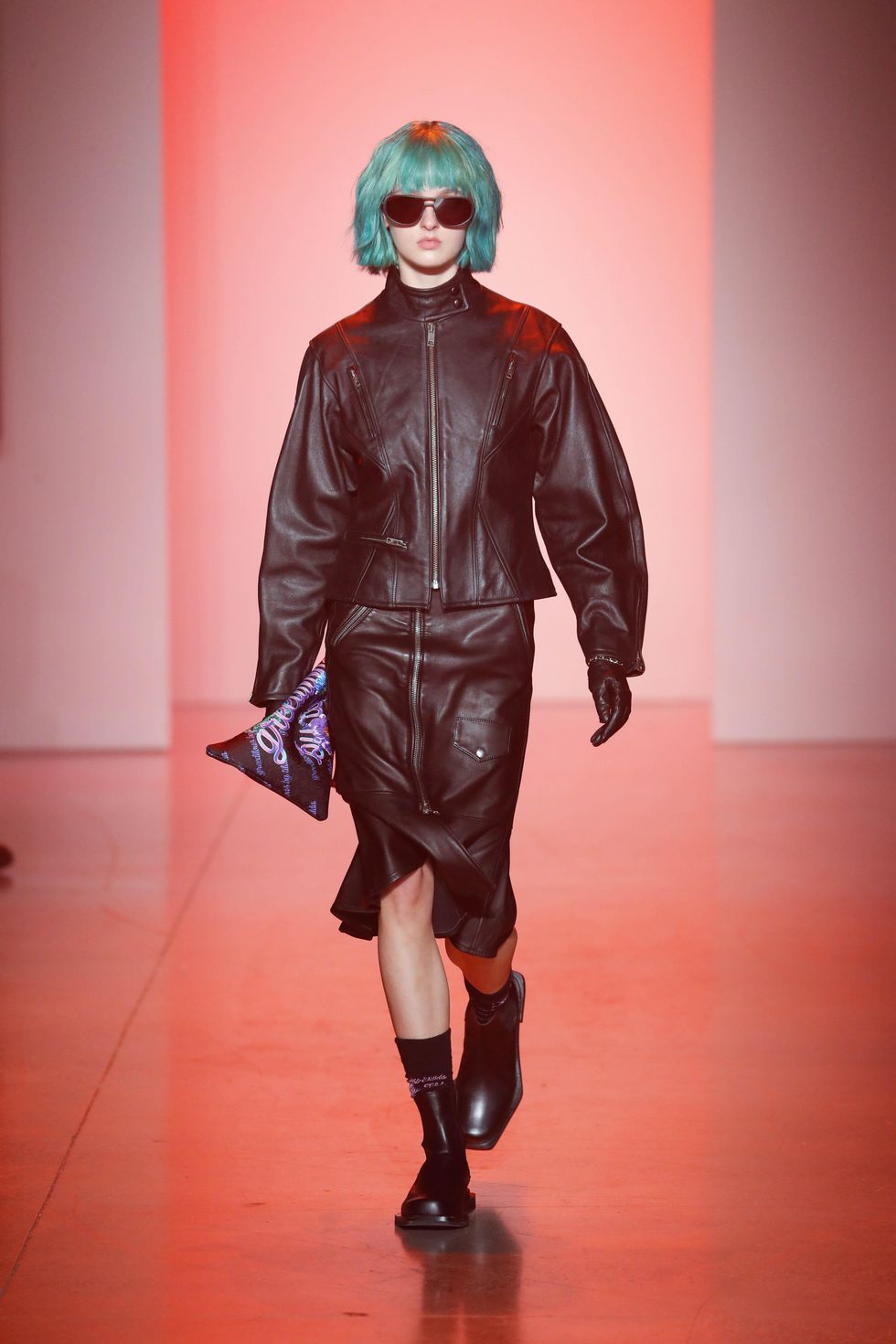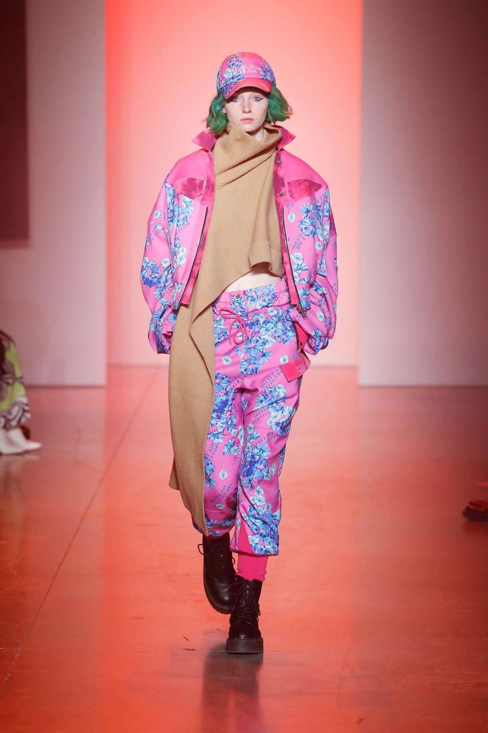 The theme at the heart of Greedilous by Tilda's runway show was humanity and its future. The models all sported wigs that mimicked Tilda's hair, and the garments were all colorful and bold. But while there were a lot of strong and vibrant visual elements, Park made sure to accent the looks with delicate details that added a soft and elegant touch.