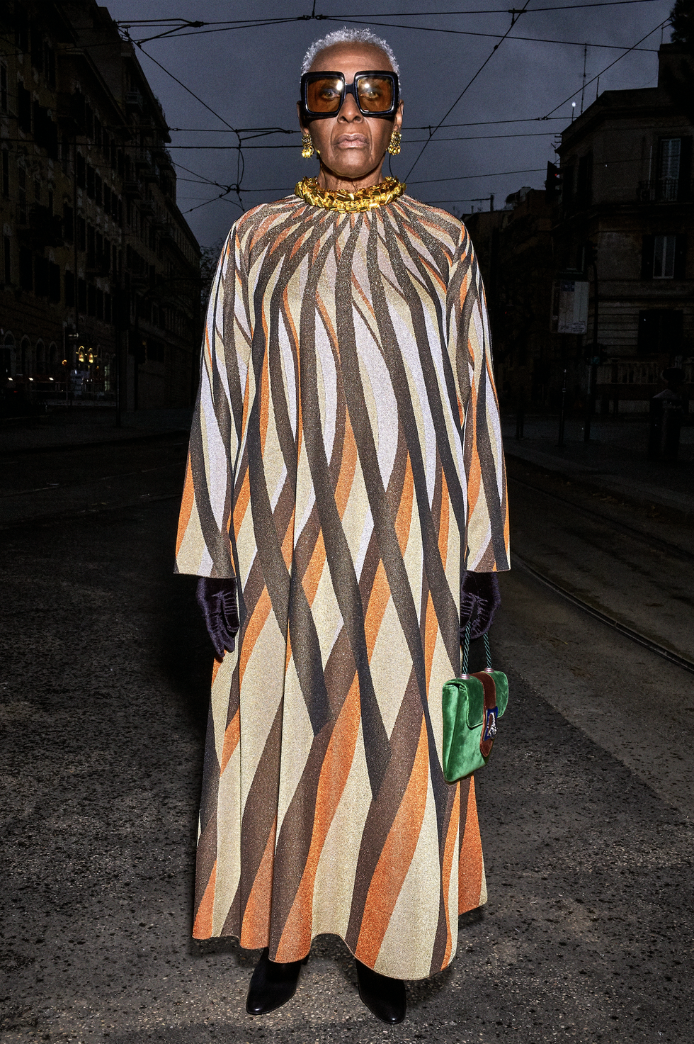 Some of the biggest collection standouts are worn by Bethann Hardison, the pioneering model and fashion activist who leads efforts for more diversity and inclusion on the runway and behind-the-scenes. Hardison, who sports everything from floor-length dresses and printed coats in the lookbook, was also tapped by Gucci earlier this year as a consultant.