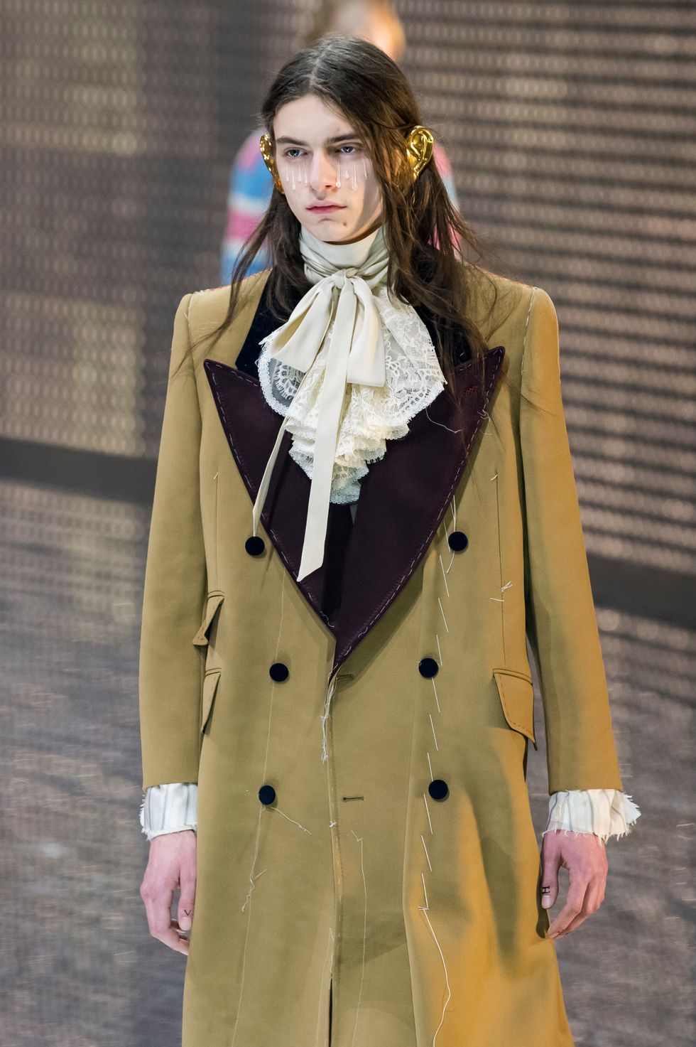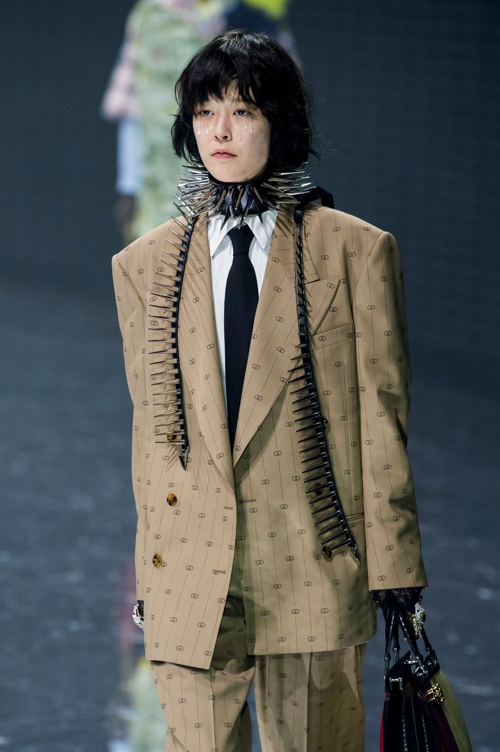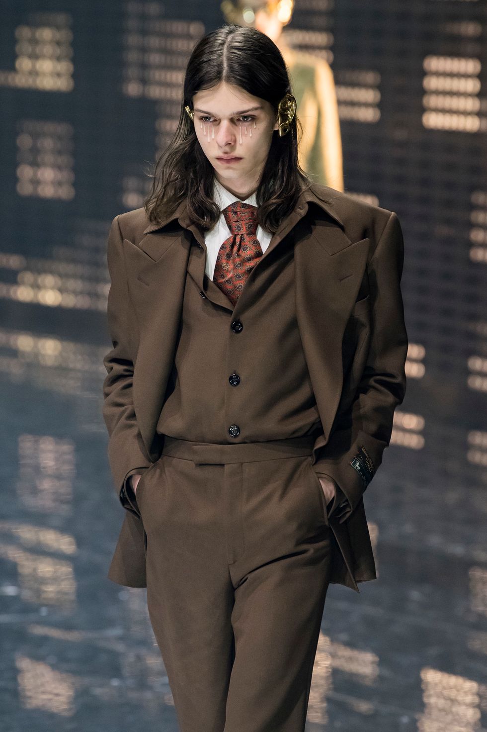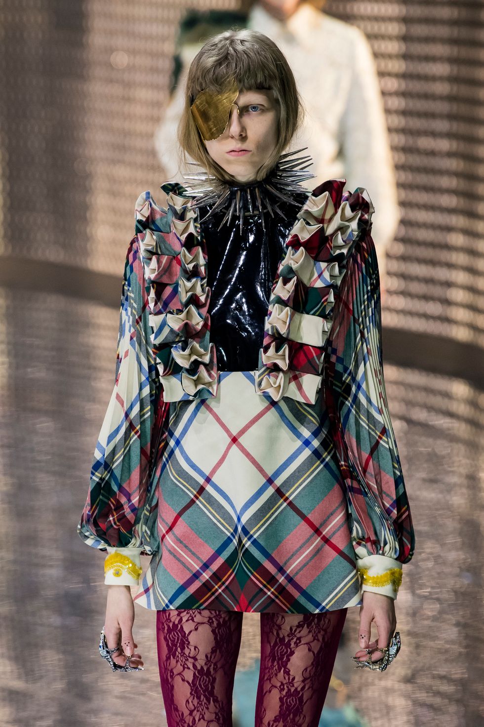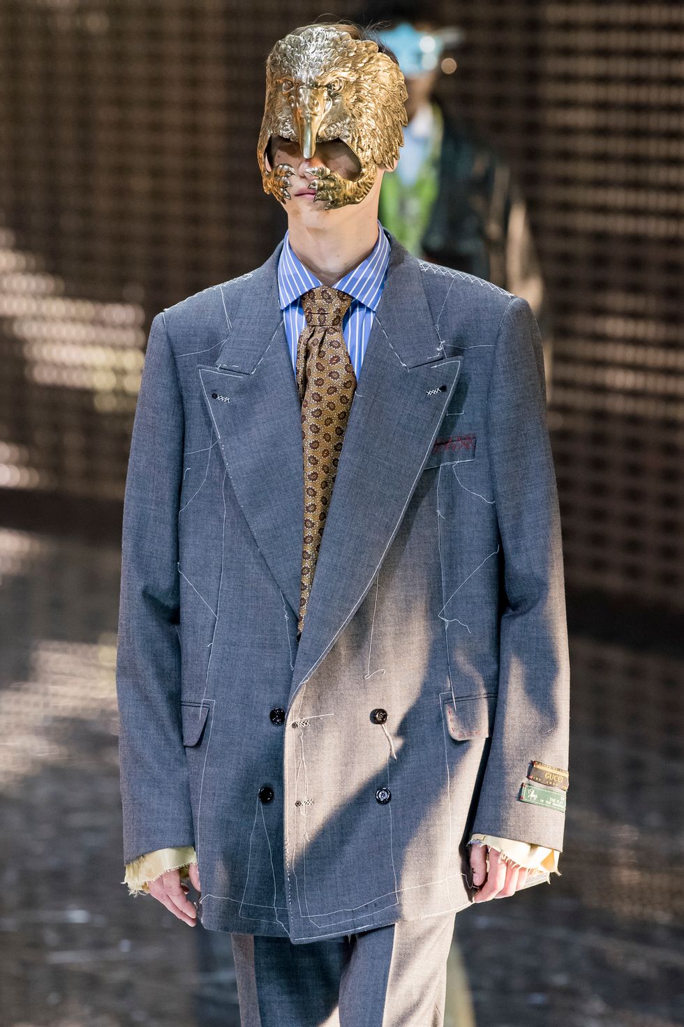 Before guests even got to the venue for the fall 2019 Gucci show, creative director Alessandro Michele had sent them a sneak peek of the collection theme. The invite, sent in a big box, was a white mask. The collection show notes were aptly titled "The mask as a cut between visible and invisible," and the set — comprised of 120,000 flashing LED bulbs — served as a sort of self-reflection of Michele's inner aesthetics and feelings. Simply put, it seemed to be a transformational moment for Gucci. This may not have been Michele's strongest Gucci collection to date, but it was interesting to see how Michele approached a more toned down sensibility. Here's everything you need to know about the fall 2019 show.