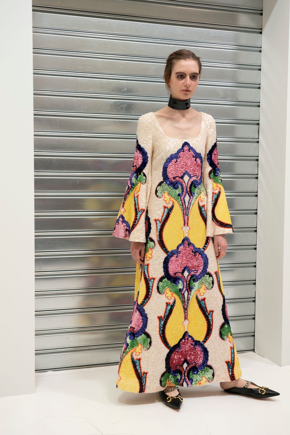 The brand did not shy away from its signature maximalist magpie aesthetic, with vintage-inspired dresses in rich embroideries and quirky patterns on full display here.