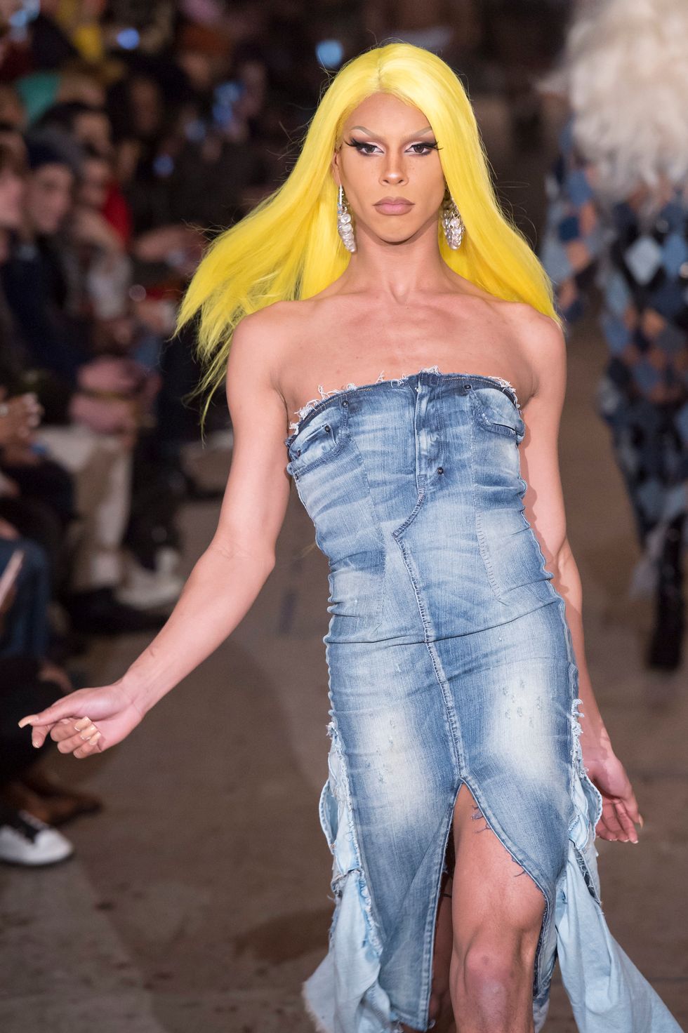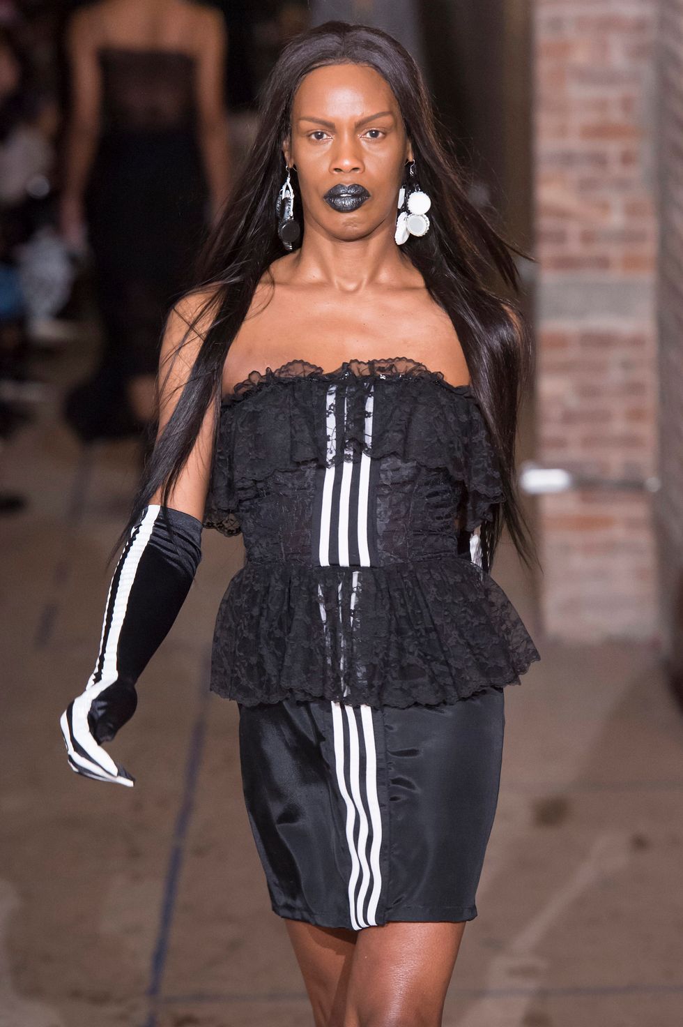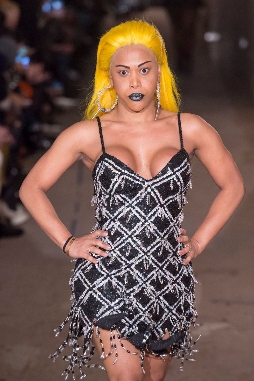 Over a booming soundtrack that featured a range of ballroom jams, the 33 models — including fashion favorites like Munroe Bergdorf and Raisa Flowers from previous seasons and New York legends like Connie Girl Fleming and Kevin Aviance — served up ovahness aplenty, transforming yesterday's Soho loft-style catwalk into an undeniably sexy, in-your-face fantasy.