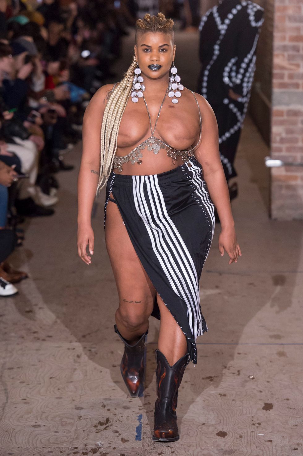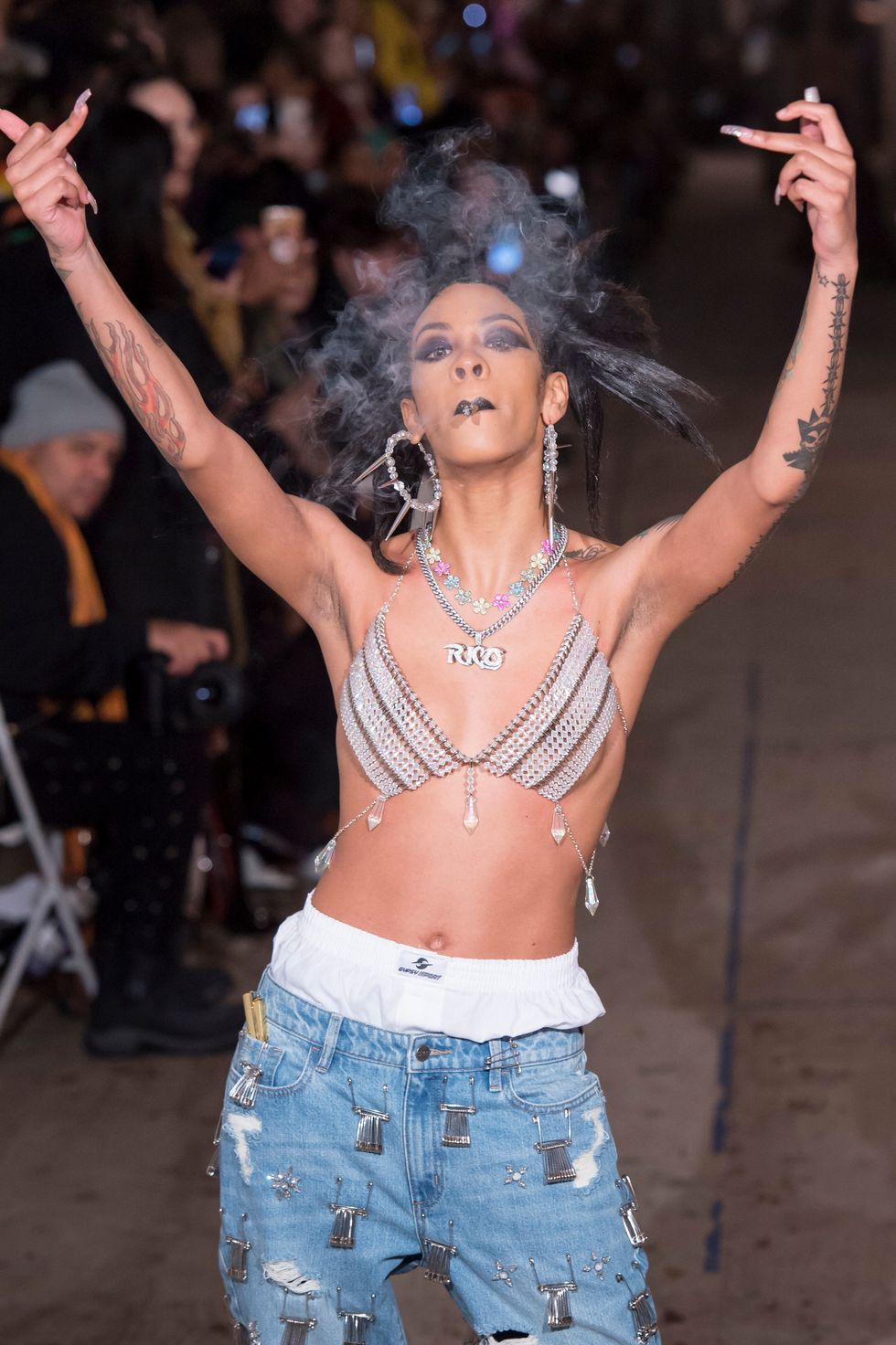 Category is: free your mind and the rest will follow. Literally, rap up-and-comer Rico Nasty sparking a blunt on the runway is about as free as you can be.