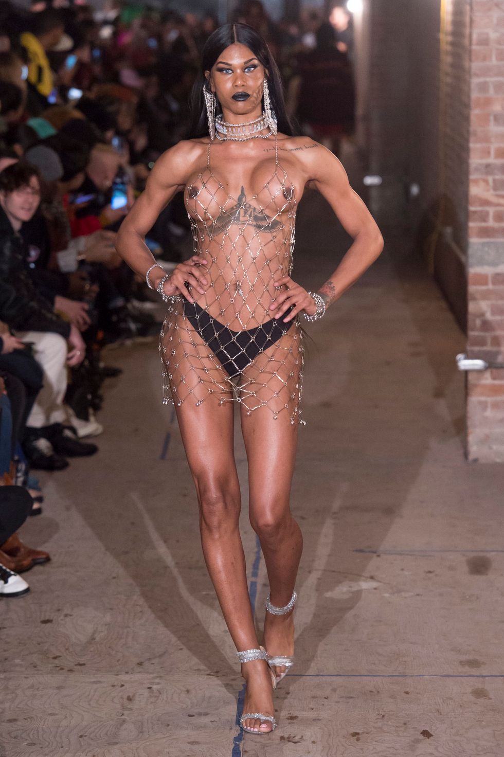 For this show, casting director Anthony Conti worked with Uribe to cast a more diverse range of models than ever, incorporating rising, newer talent (such as PAPER Predictions nominees Serena Tea and Jari Jones), plus-size women, and "thicc boys," all while centering trans women of color. Conti tells PAPER one major intention for the show was to combat the harmful untruth that trans women can't properly sell femme fantasy, a recent assertion very stupidly made by a (cis male) Victoria's Secret executive.