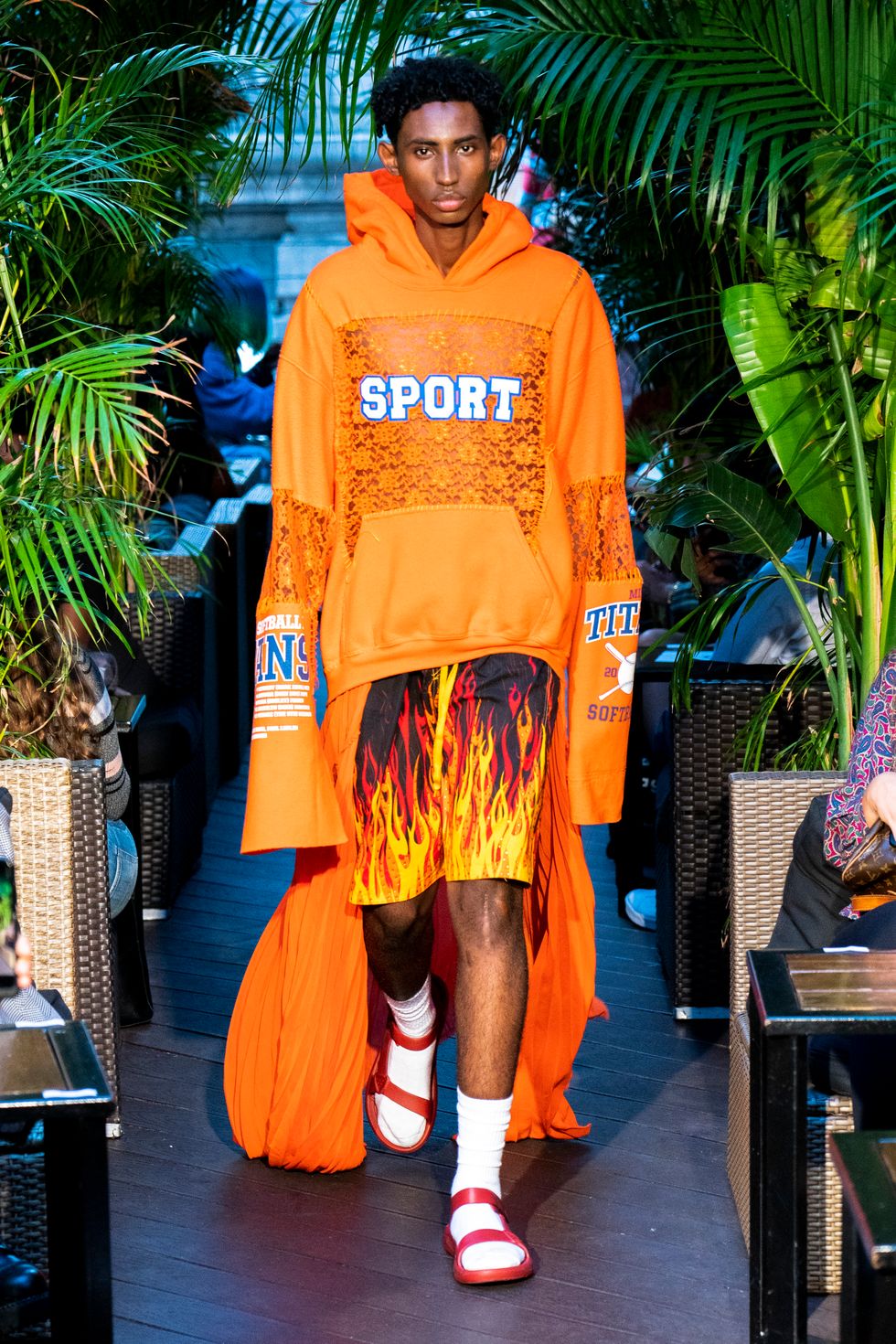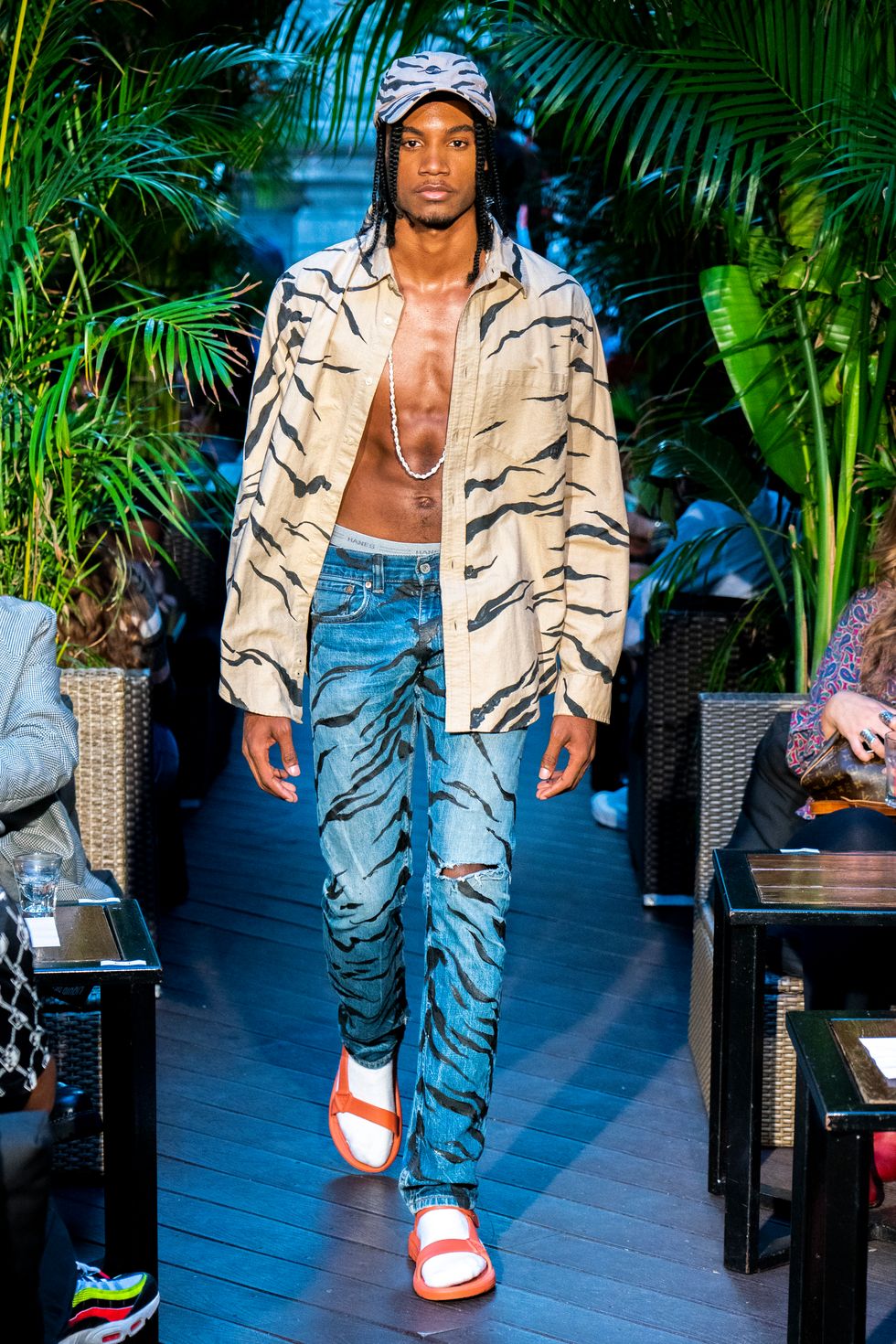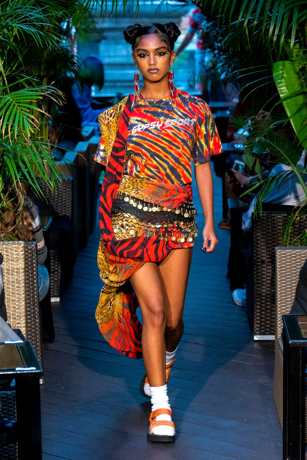 Gypsy Sport's Spring 2020 NYFW show felt a bit more subdued than past presentations — but not because of the clothes, a reliably eclectic assortment of mixed animal prints, graphic floral, fauna, and fire motifs, varsity-inspired sportswear, and artfully shredded hemlines showing off, as always, acres of luscious skin.