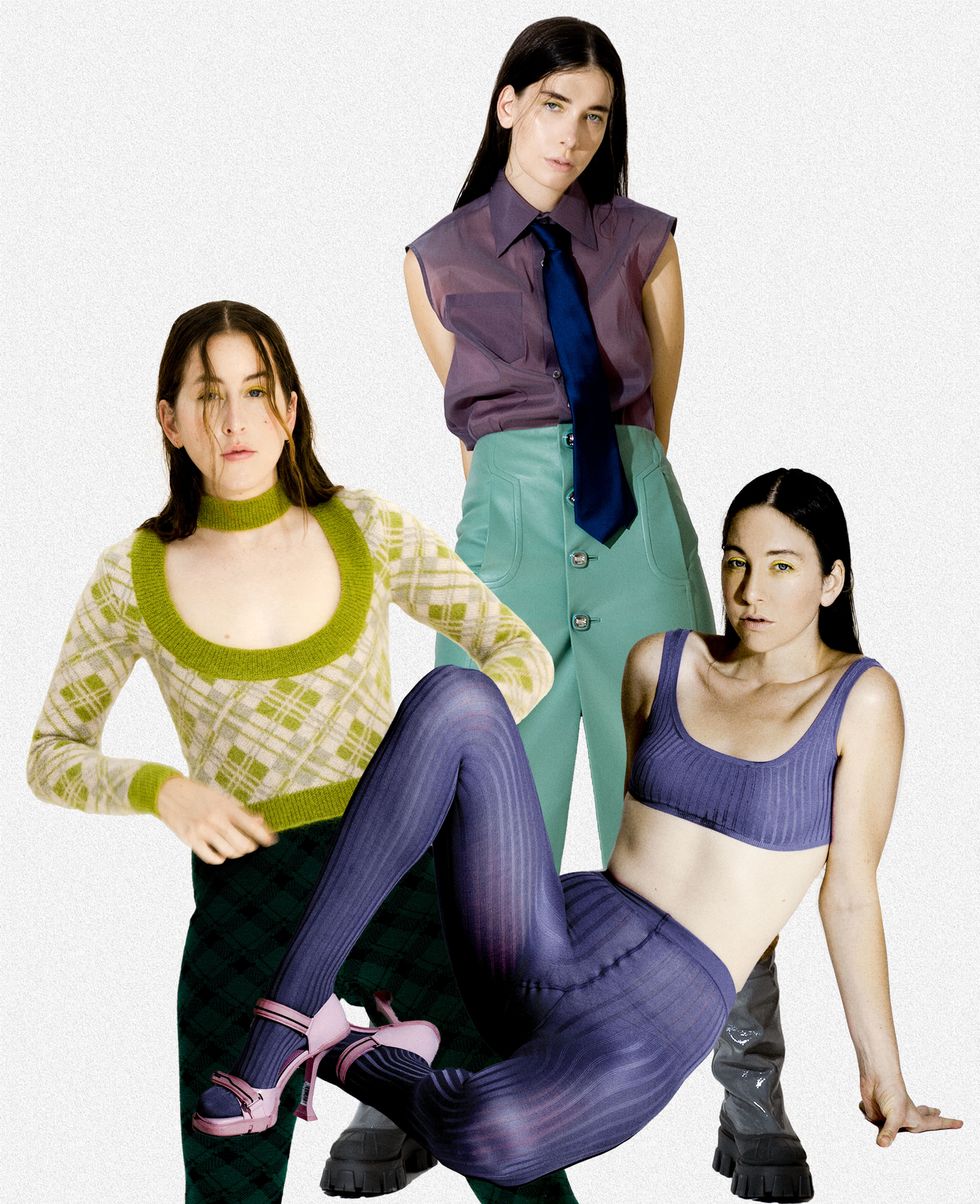 (On Alana) Clothing: Miu Miu; (On Danielle) Clothing: Prada; (On Este) Clothing: Prada