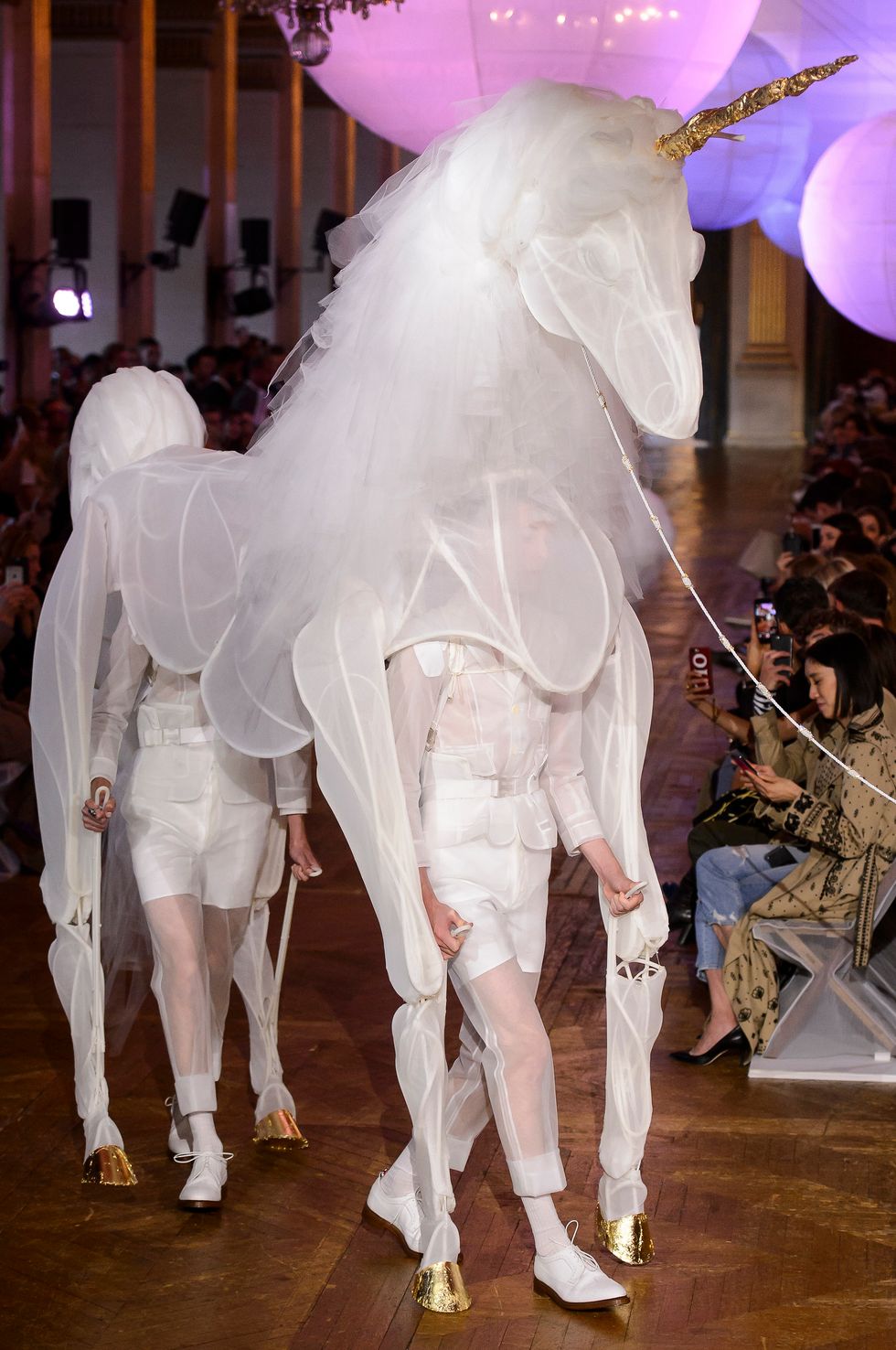 Looking for a couple's costume? Thom Browne suggests a hand operated, semi-transparent unicorn with a gilded horn and hooves. You may have to keep a third person on standby. We can't image it's easy to navigate a party in one of these.
