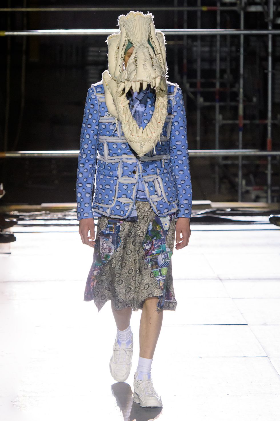 When in doubt, headdress it out. Earlier this year, Rei Kawakubo sent models wearing surmounting, stuffed dinosaur masks down the runway in a nod to childhood innocence. What better way to revive your inner kid than a giant T. Rex headpiece?