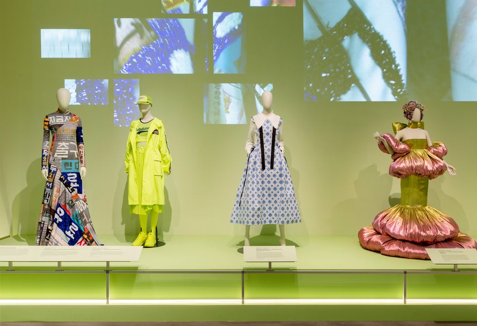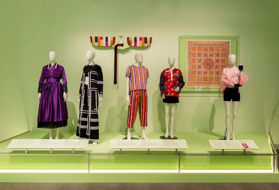 Because “Hallyu!” has such an open and wide-ranging approach to its main subject, there’s virtually no limit for what kind of material can be included. The exhibition wants you to consider the artistry in everything from beauty packaging to K-pop glow sticks, and for the most part it’s pretty convincing. These are genuinely fun and interesting ways of piecing together a history in progress. Fine art is slightly under-represented — it should be a much bigger deal to highlight how a Korean man (Nam June Paik) basically invented video art, never mind to mention that contemporary artists are absolutely dominating today. Fortunately, the show’s section on Korean fashion spanning high-waisted hanboks to alien-diva couture is absolutely stunning and offers an excellent chronicle of how tradition has gradually mutated to the present.