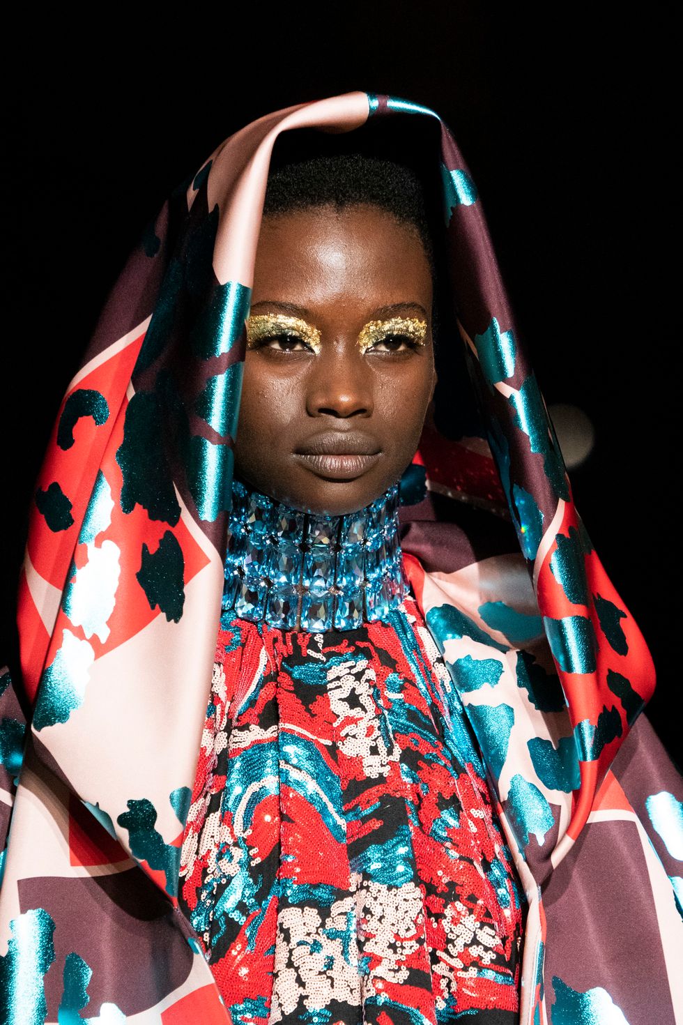 A highlight of the fall 2019 show? The mixed prints in striking red, blue, black, cream and golden tones. It was busy in the best possible way.