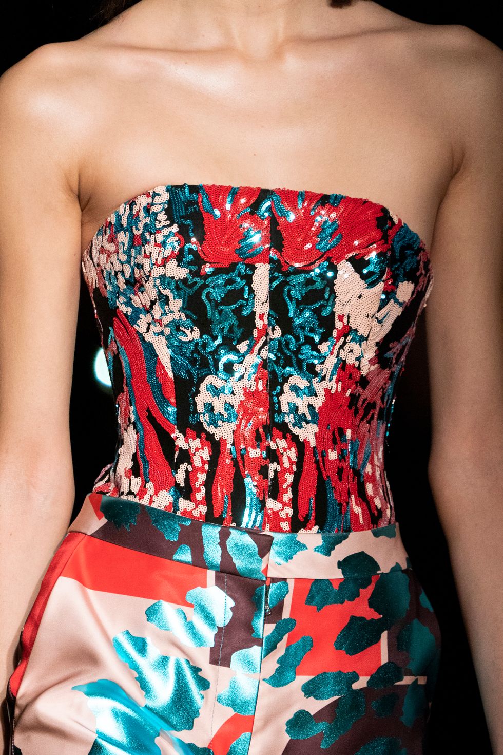 Halpern took inspiration from the iconic French-Russian illustrator Erté, known for his whimsical and surreal drawings of costumed women. Some of the looks at Halpern, dotted with metallic turquoise leopard spots, looked like they were straight out of one of Erté's drawings.