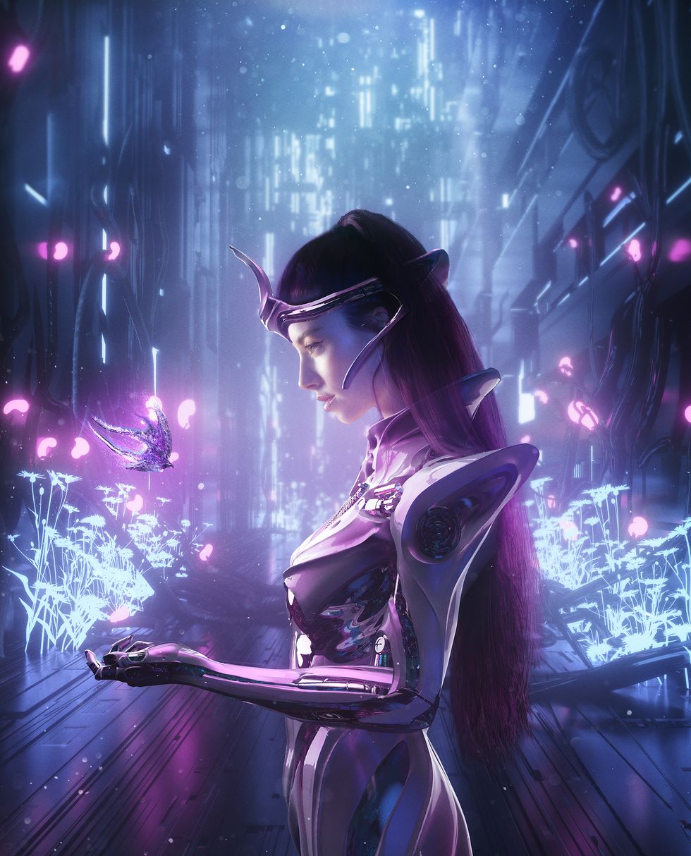 Both aesthetically and sonically, your vibe teeters between super futuristic space alien cyber-princess and magical Middle Earth fairytale warrior elf — basically, a juxtaposition between sci-fi and fantasy. But if you had to pick just one, which do you lean towards?