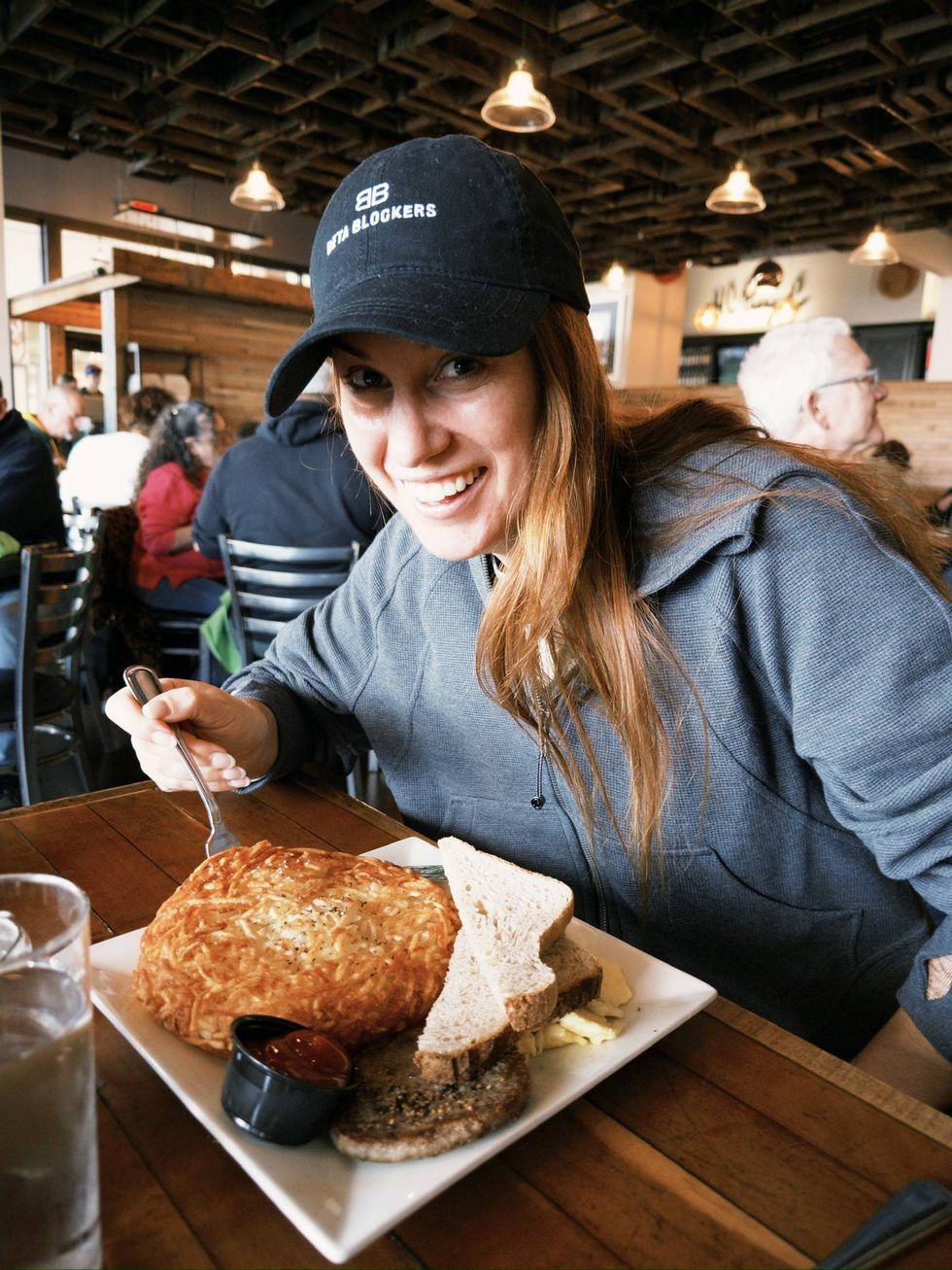 "I love finding good breakfast spots on tour. I found this hashbrown in Wisconsin that was bigger than my head. I took a strong nap after this."
