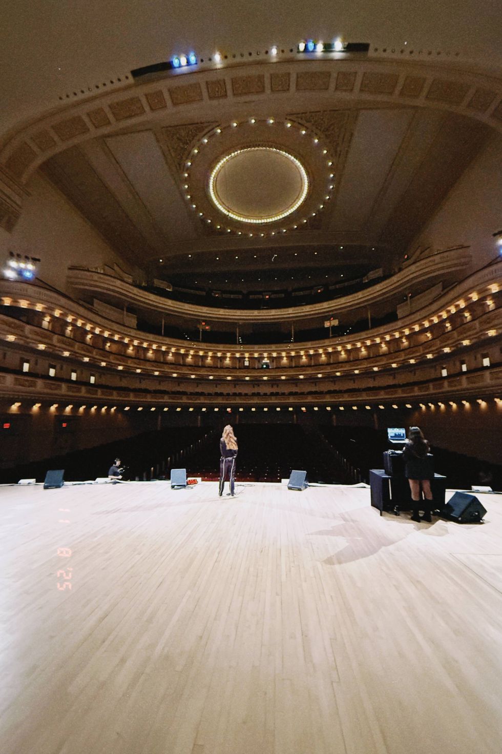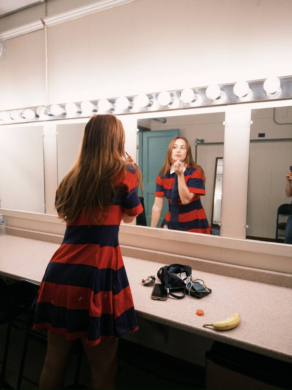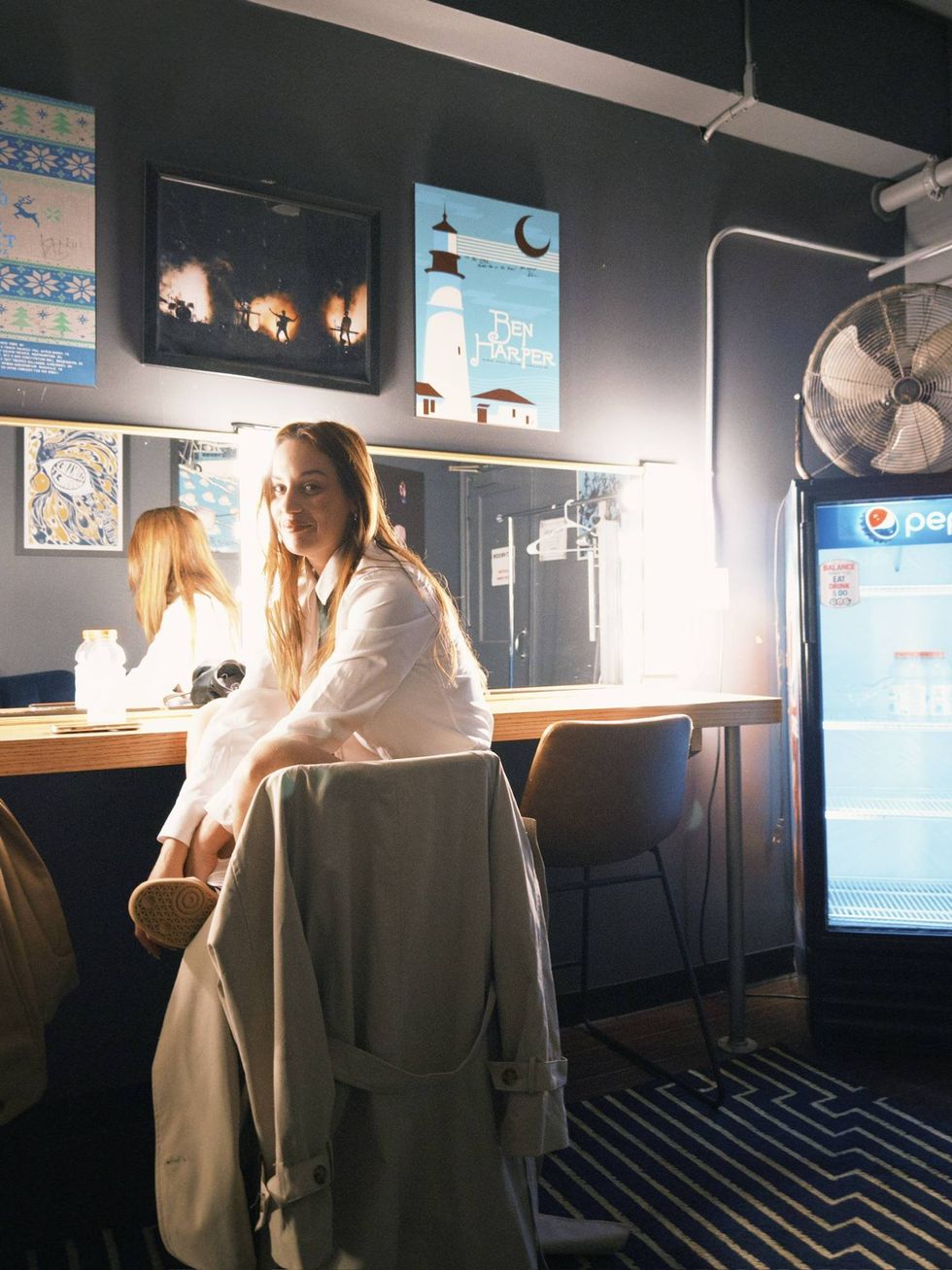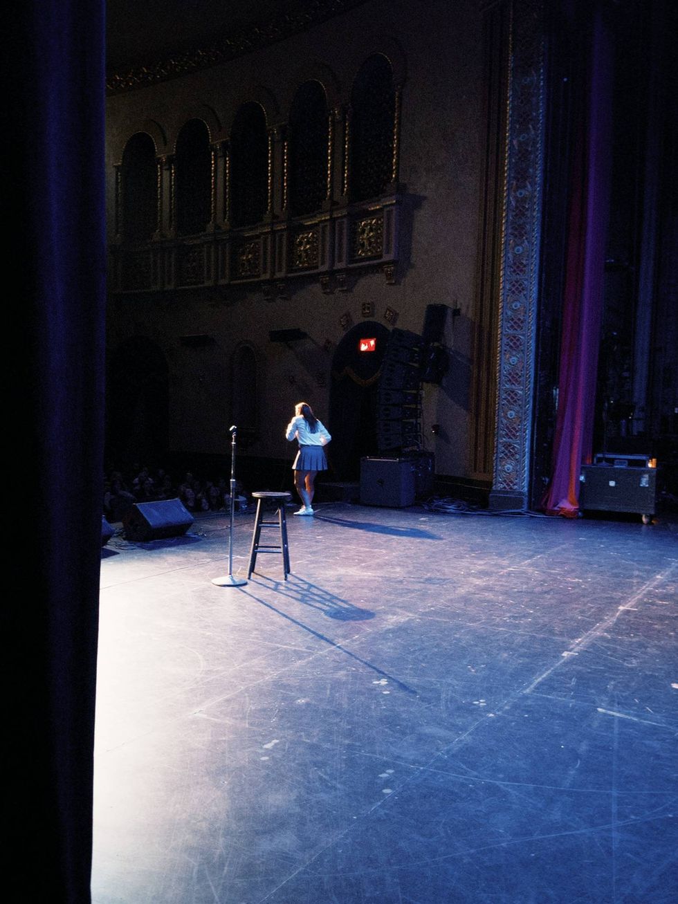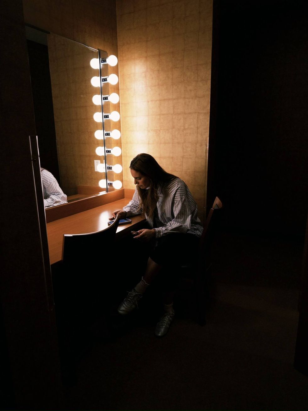 "I love the energy right before the show because I put on my angry women playlist on Spotify and hear the murmur of the crowd as they spill in."