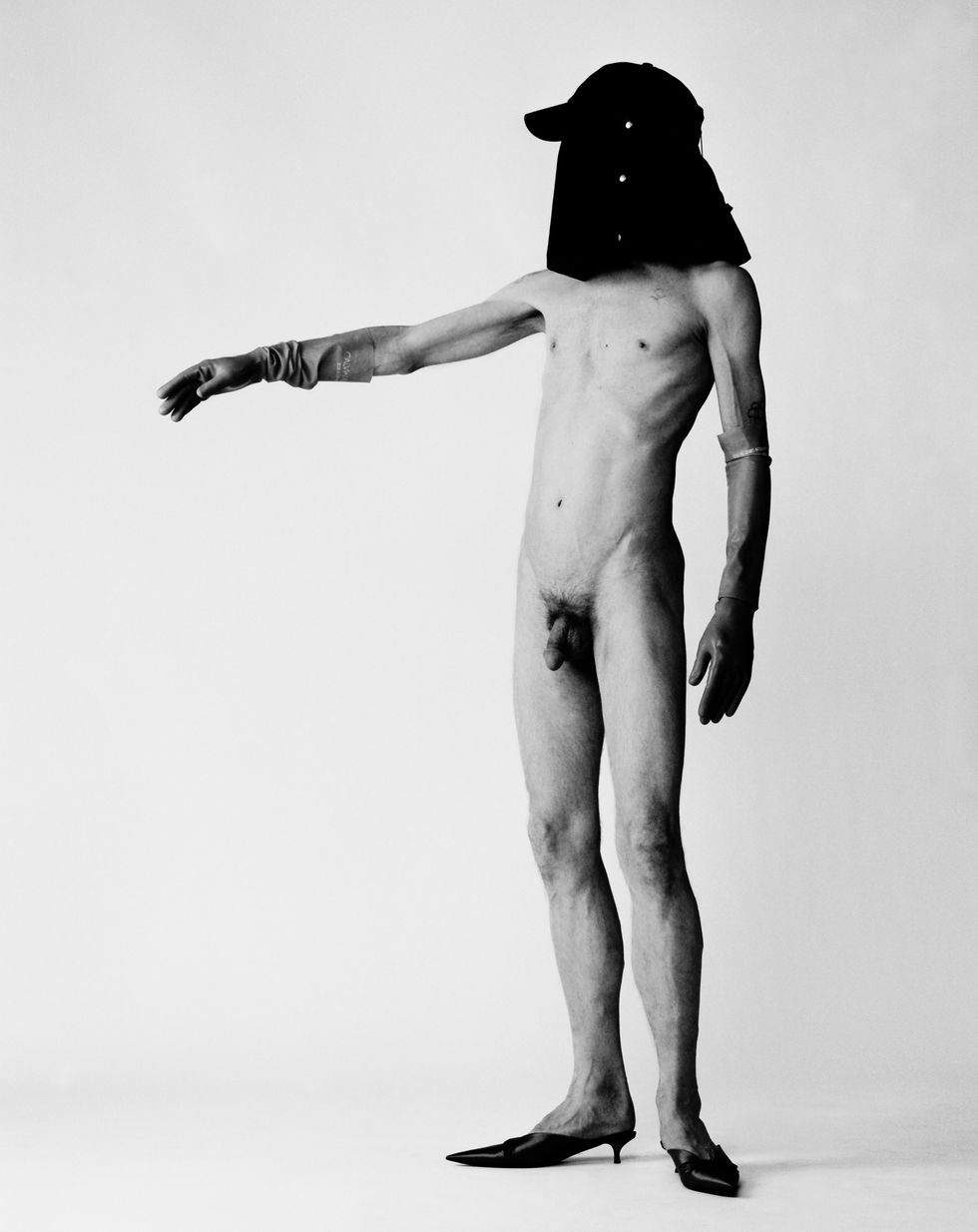 Hat by Raf Simons, Gloves by Calvin Klein 205W39NYC, Shoes by Balenciaga