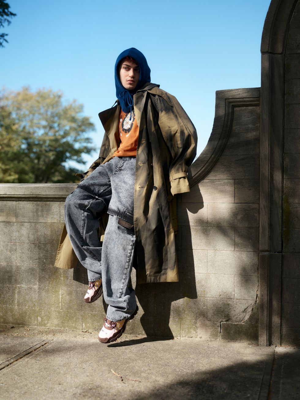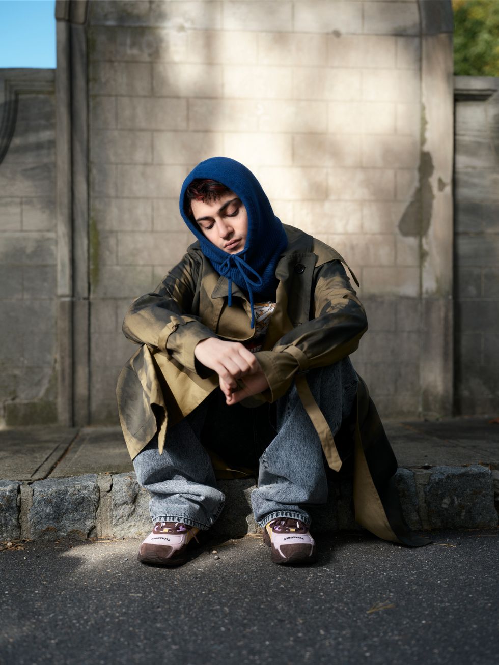 Hood: Assembly NY, Tee: Pleasures, Shoes: Pleasures x Asics, Pants: le PÈRE, Coat: Yoke