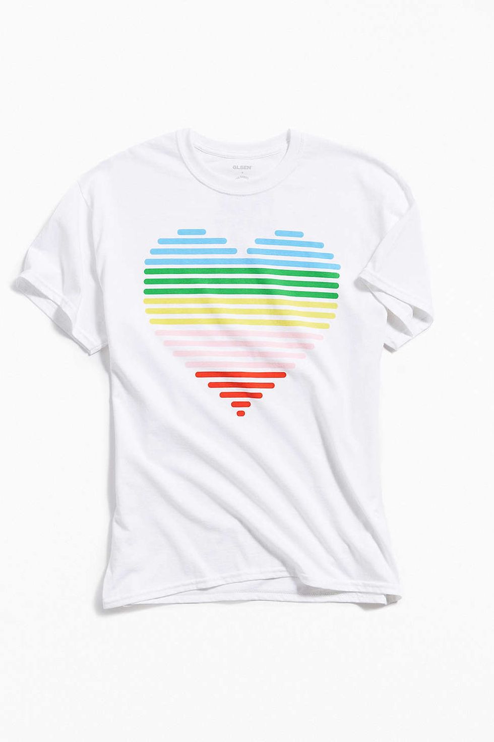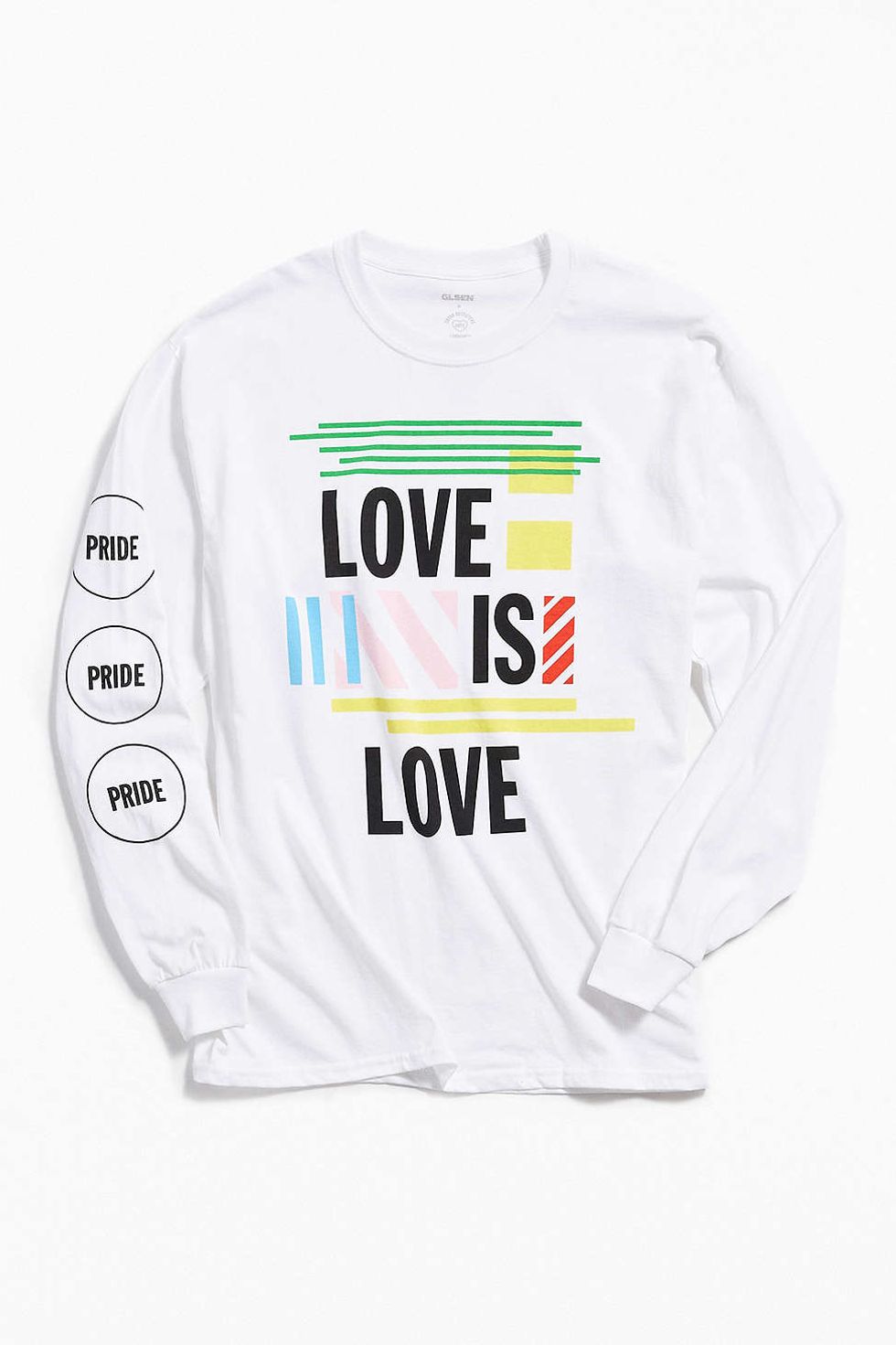 The collaboration includes a tote bag with rainbow handles, and both a long-sleeve and short-sleeve graphic tee available in pink and white emblazoned with "LOVE IS LOVE" or a distorted rainbow heart. The best part? All the pieces prioritize affordability: nothing costs more than $35 and a portion of the sales go straight to GLSEN.