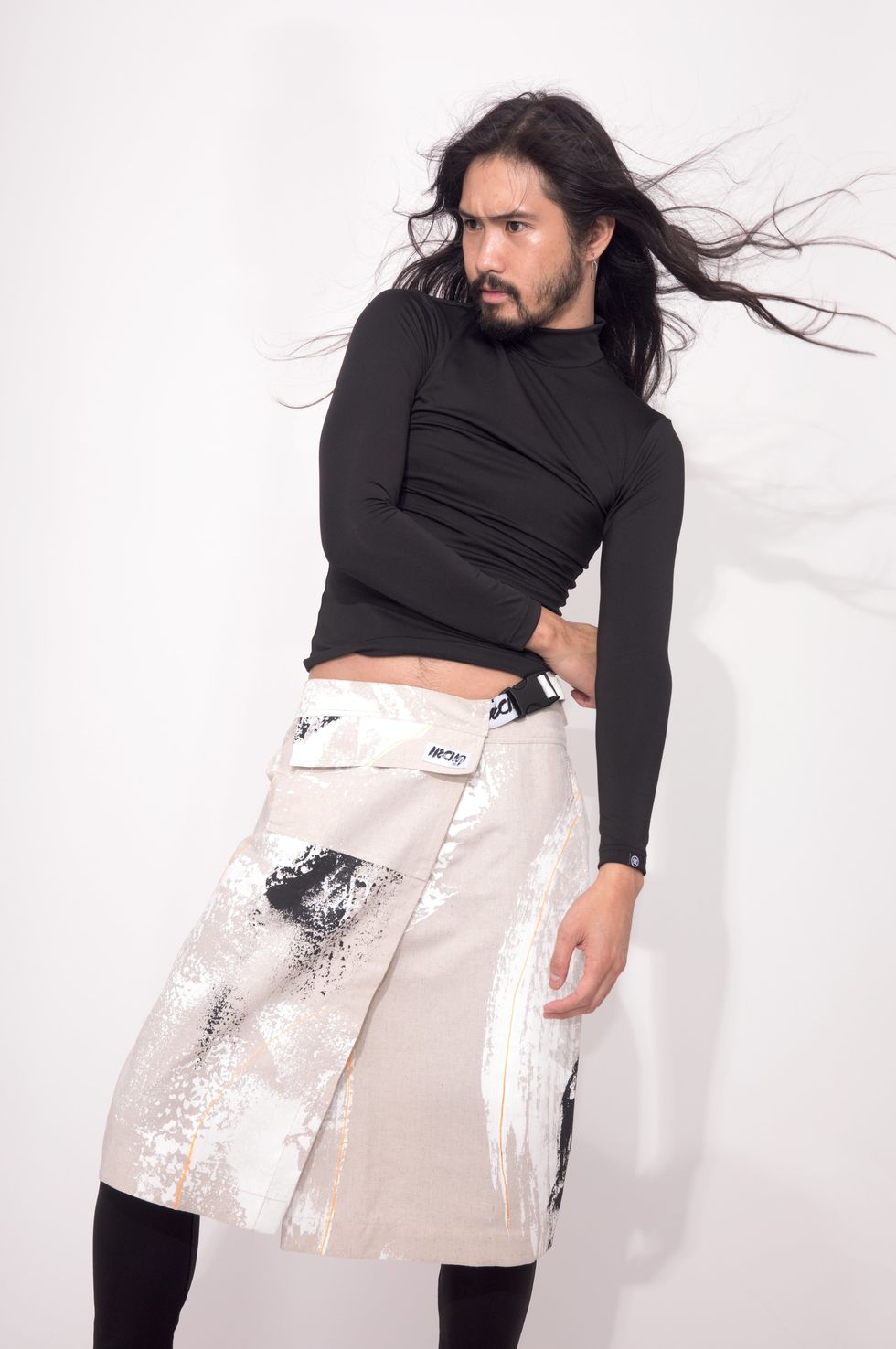 Our hand-painted main line is "couture" for everyday life; everyone has value and everyone deserves value. We design with our demographic in mind by making it functional but retaining its artistic value. The activewear is the ready-to-wear portion of the line, meant to be worn comfortably as versatile base-layers. Ultimately, HECHA / 做 is for everyone because HECHA / 做 goes beyond the material object. HECHA / 做 represents a mentality towards the subversive. We are trying to create clothing which envisions an utopia of the not-yet-here future; a world that is sustainable and fluid.