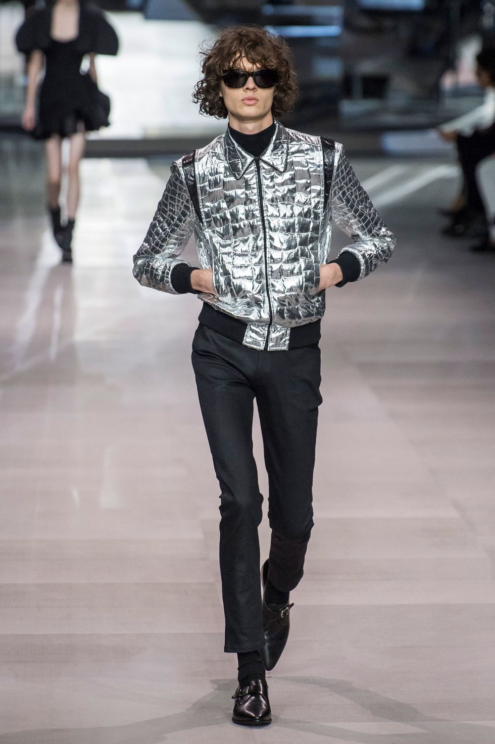 Nightlife has always been a key part of Slimane's aesthetic. The invitation for Celine spring 2019 show was a hardback book featuring images the designer took at iconic Parisian nightclubs including Balajo, Le Cigale, Chez Moune, and Pile ou Face. Fittingly, the collection was full of looks that would fit perfectly into these hotspots.