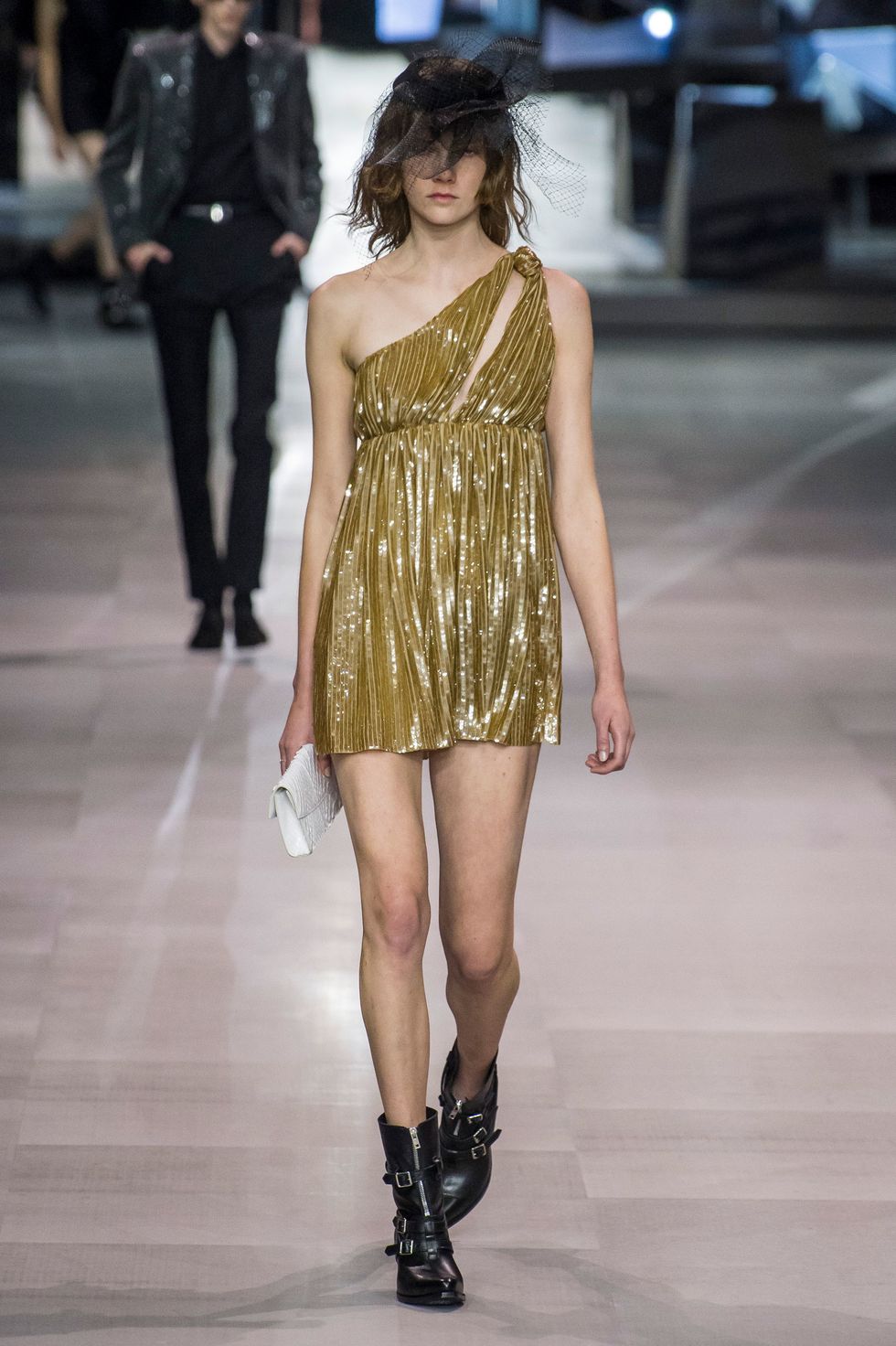 Nightlife has always been a key part of Slimane's aesthetic. The invitation for Celine spring 2019 show was a hardback book featuring images the designer took at iconic Parisian nightclubs including Balajo, Le Cigale, Chez Moune, and Pile ou Face. Fittingly, the collection was full of looks that would fit perfectly into these hotspots.