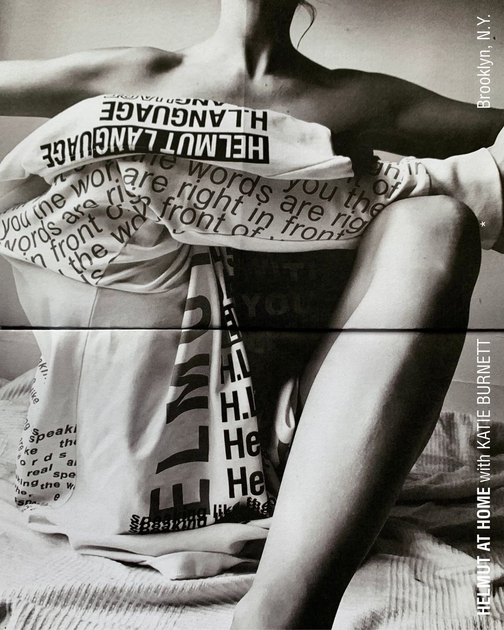 This week, the brand released the latest visuals from the series starring New York-based stylist Katie Burnett, who took a variety of quarantine self-portraits with her iPhone in her signature unconventional style while wearing pieces from Helmut Lang's collaboration with rising American designer Willie Norris.