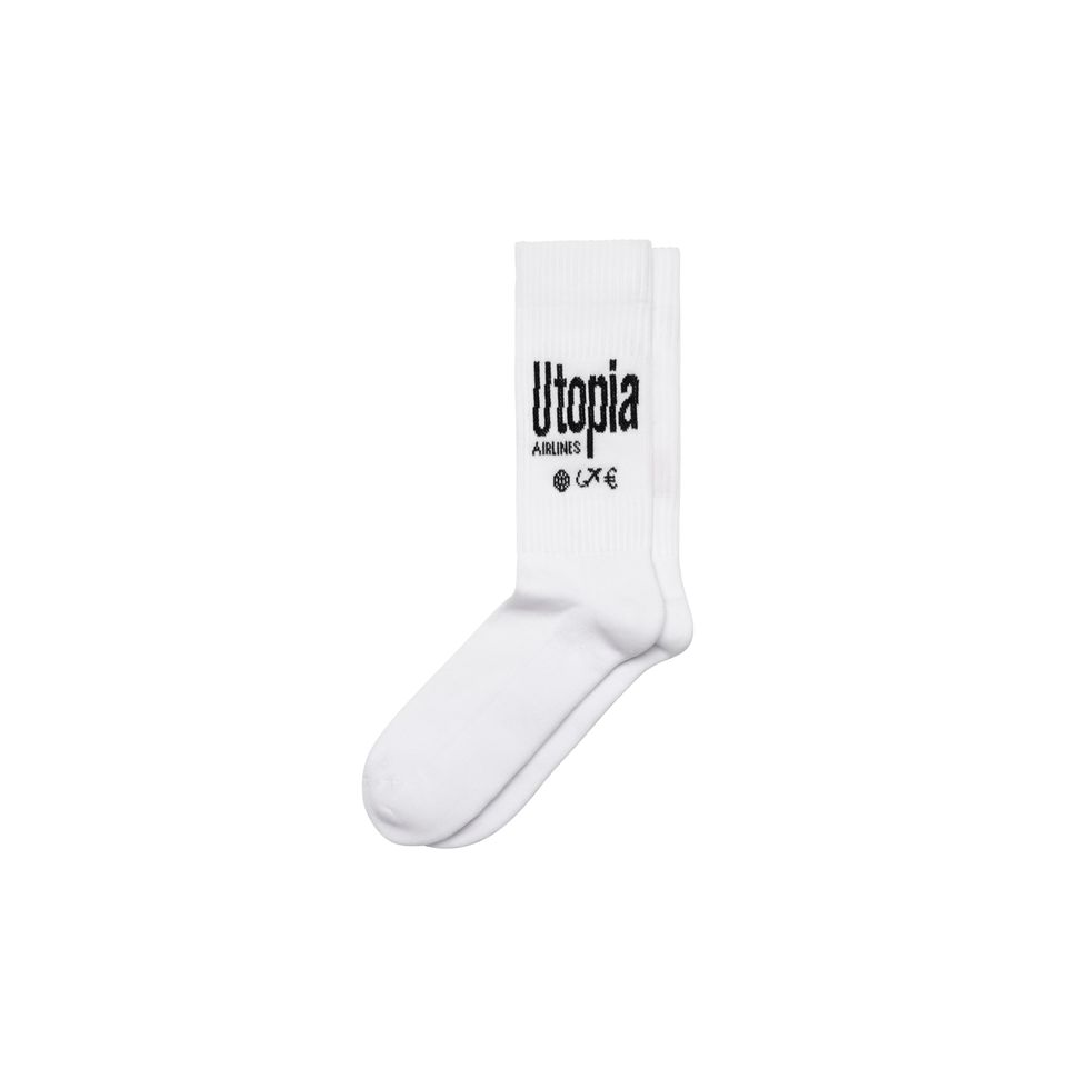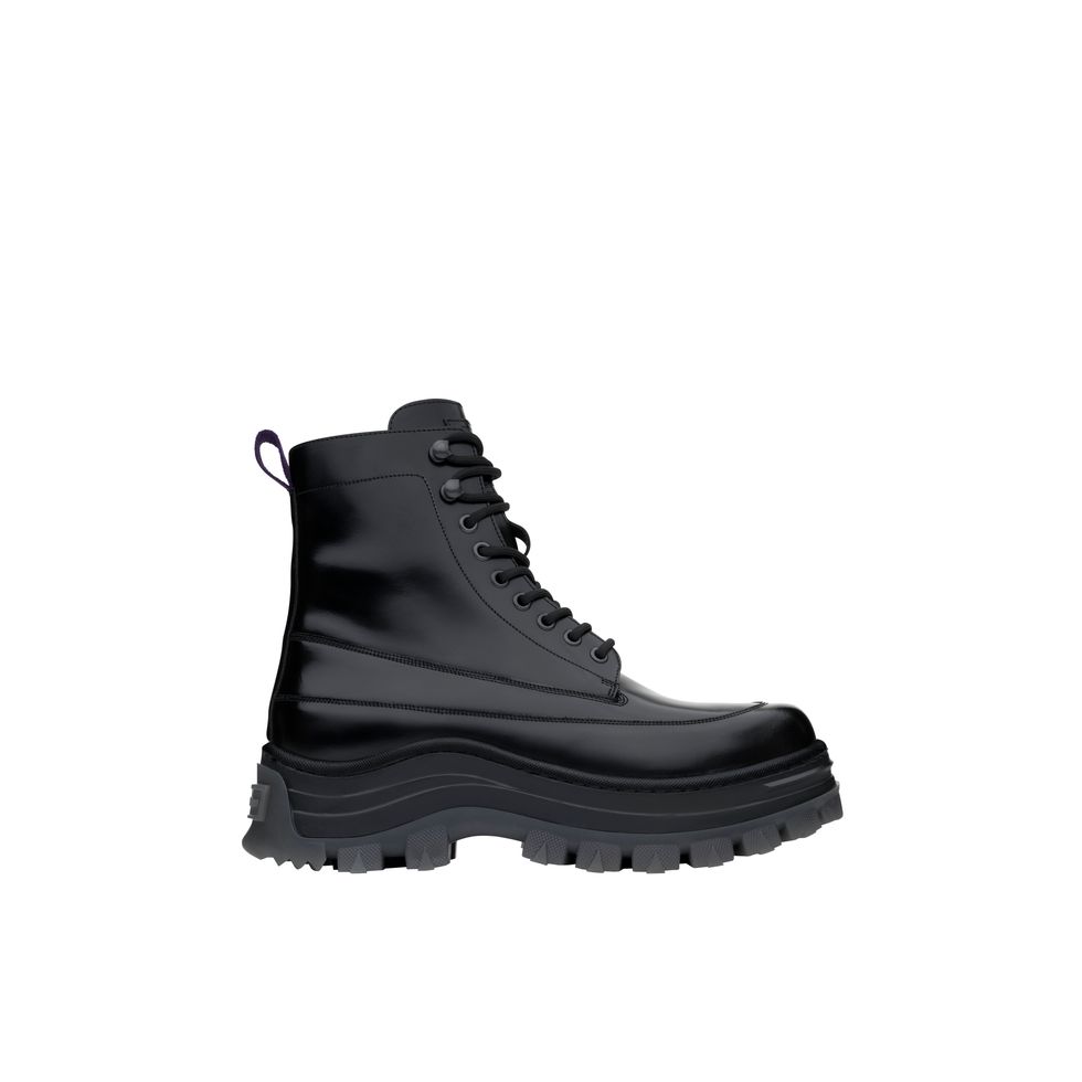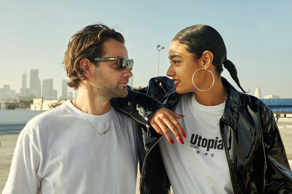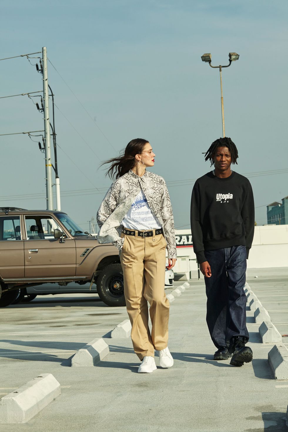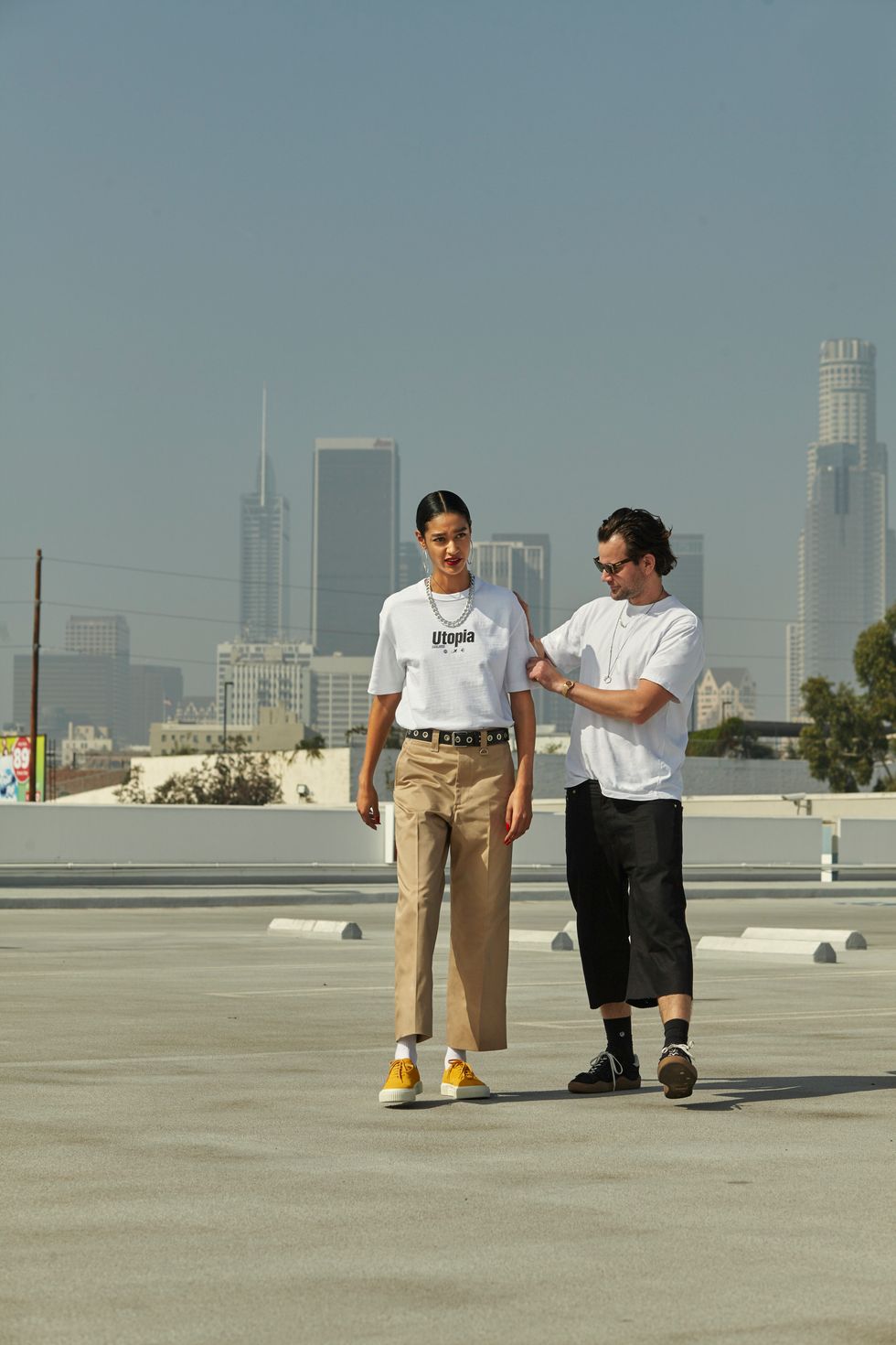 The result is a range of what Eytys considers to be a "generic" look, or "one that is meant to elevate integrity, attitude and confidence." Of course, there is a lineup of fashion-forward sneakers, shoes, and boots that bring Eytys' style to a more budget-conscious consumer. The clothes, with their boxy silhouettes aimed for a genderless audience, come in snakeskin print, shiny patent leather and suede. Several pieces are stamped with a fictional "Utopia Airlines" graphic.