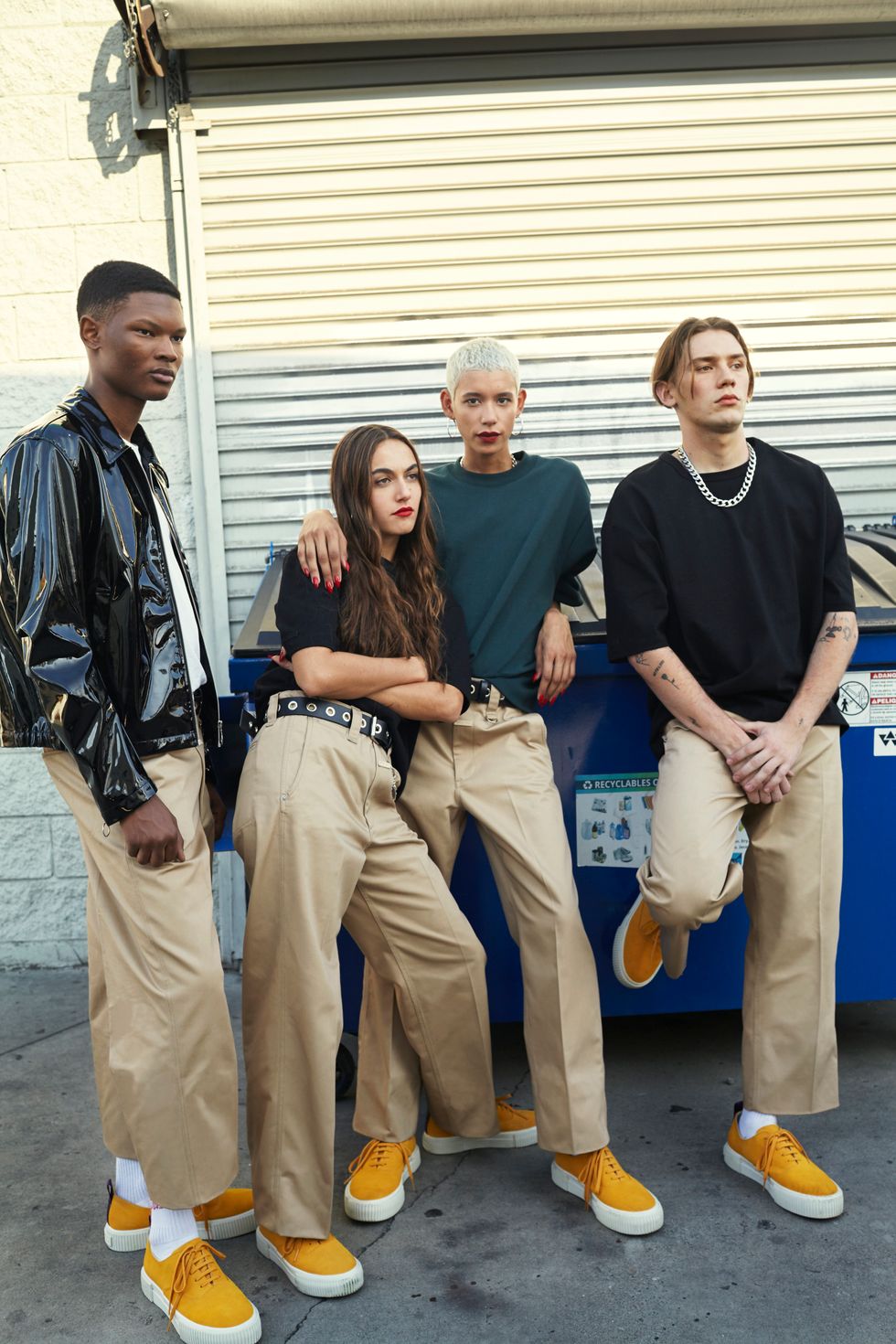 "We admire that Eytys has a look distinctly their own and initially approached them with the idea of creating a shoe collection," said Ross Lyndon, who's the Acting Head of Menswear Design at H&M. "But after initial brainstorming, it was decided that a full collection — shoes, clothes and accessories — would enable our customers to really experience the whole brand aesthetic and ethos. With this collaboration we want to offer our customers a total look that is all about chunky statement shoes and mindful proportions that are genderless."