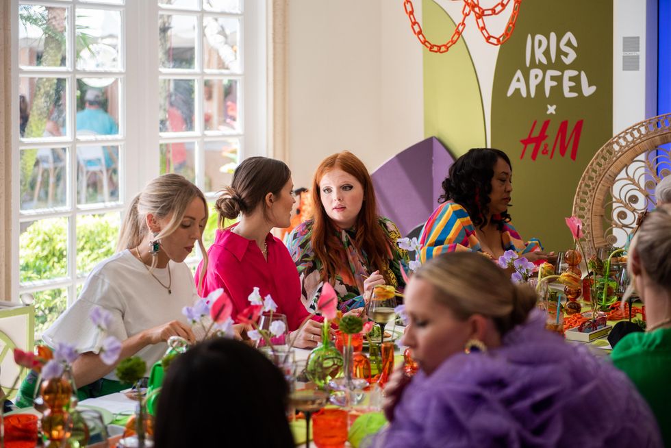 Apfel, who turned 100 last year and resides in Palm Beach, was in a spirited mood as guests like Winnie Harlow, Devon Windsor, Martha Hunt and Tessa McMillan (who stars in the H&M x Iris Apfel campaign) started to pour in, all of whom wore pieces from the vibrant collection.