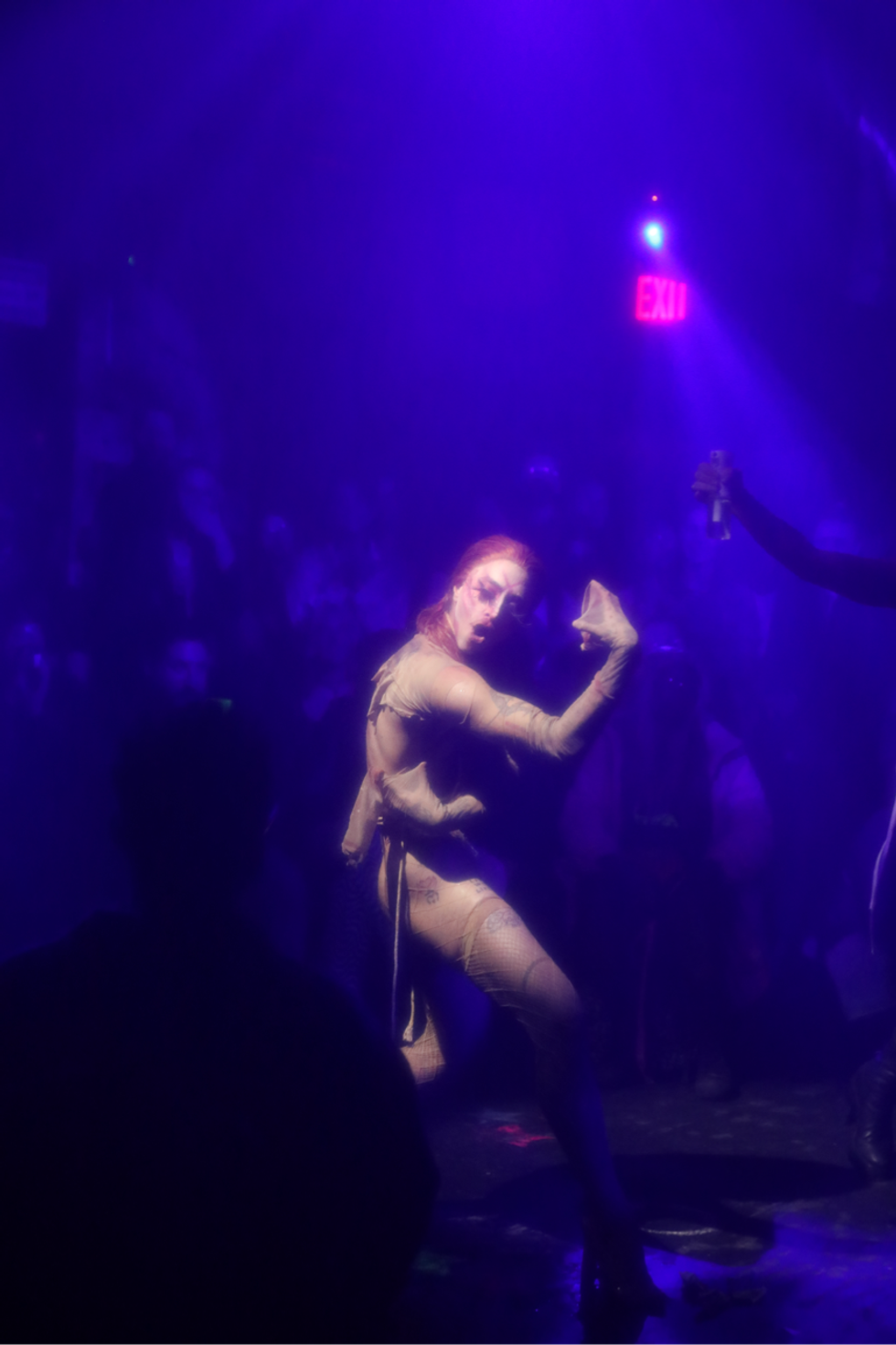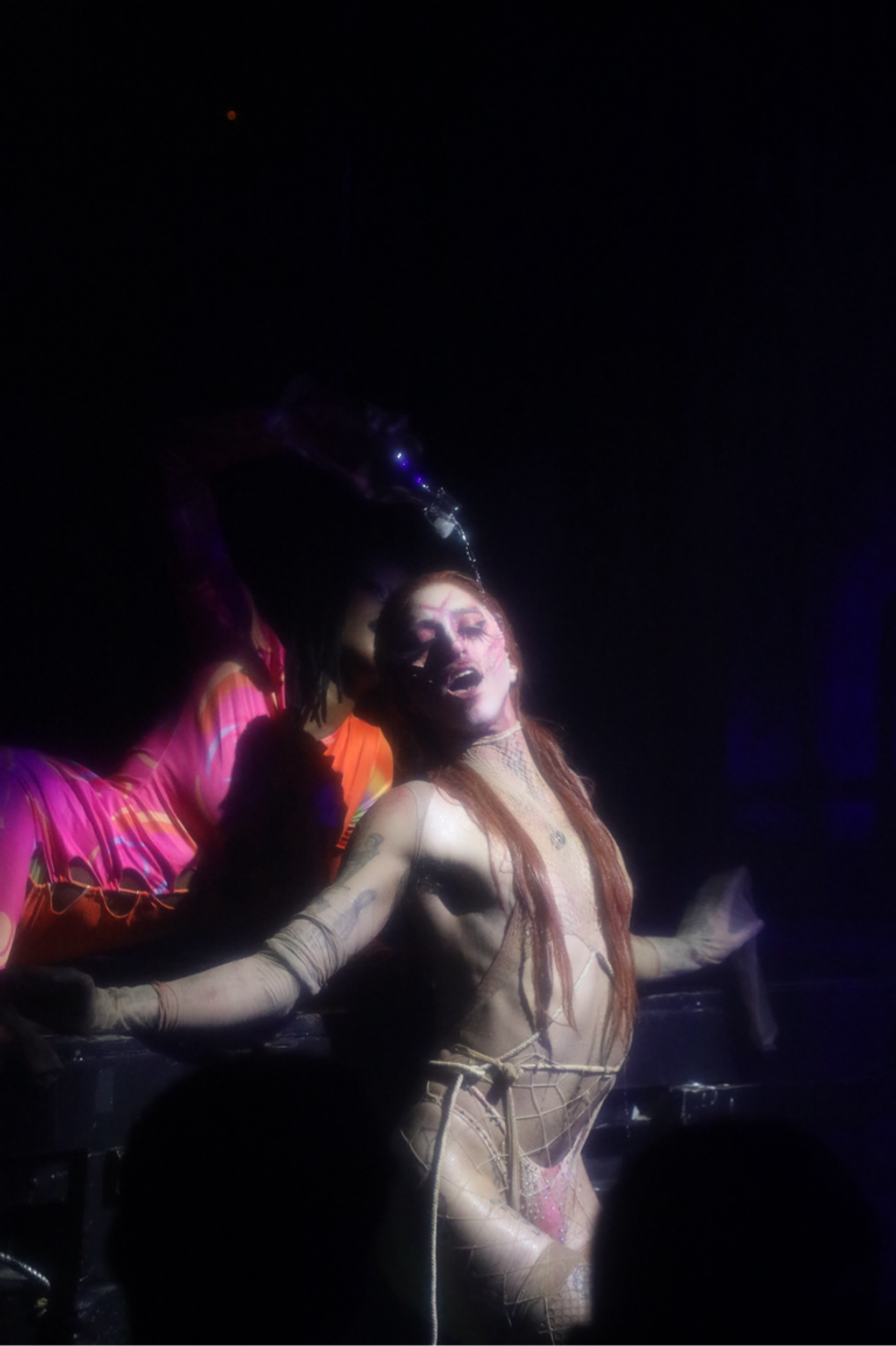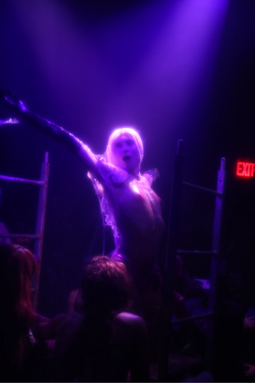 Outside of lip-syncing, the Hole Pics cast included dancers, musicians and performance artists. The duo EXULT interpreted the music as lovemaking and conflict and all the emotions in between as they danced and writhed in the middle of the audience. Clea did a live cover of “Is It Cold in the Water?” And Buffy, whose work often explores biological substances, was covered in slime. “It felt fitting to be able to have a monstrous beautiful ethereal birth for a Sophie tribute,” Buffy says. “As queer and trans people, we often experience a hunger for touch and physical connectivity.”