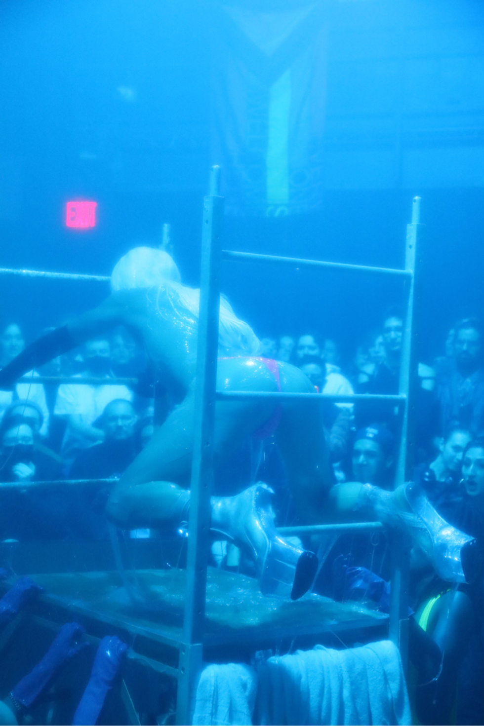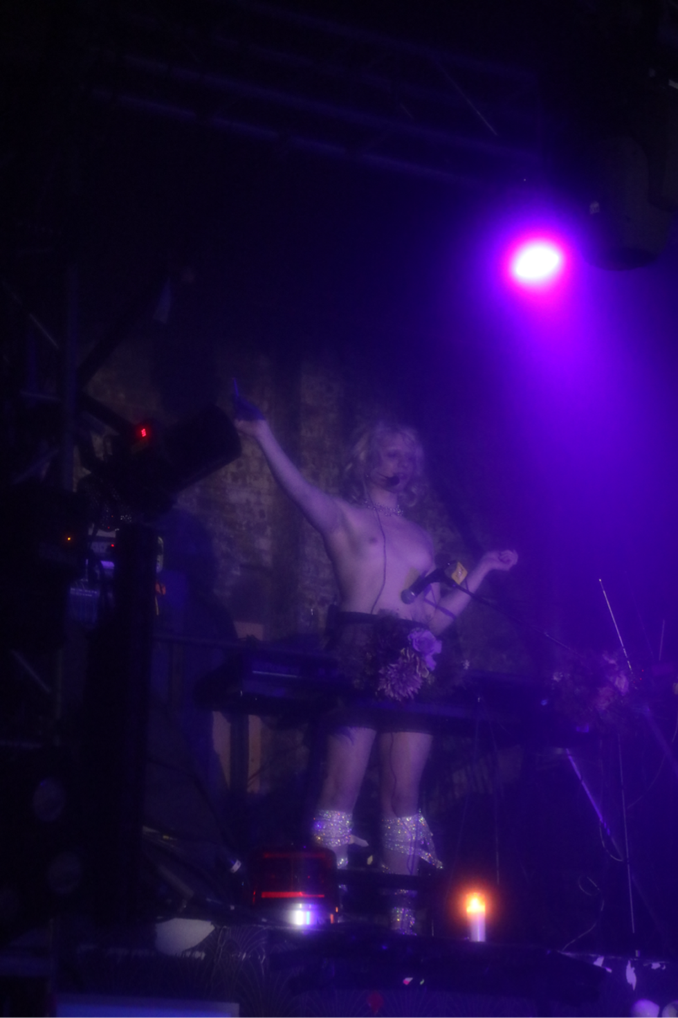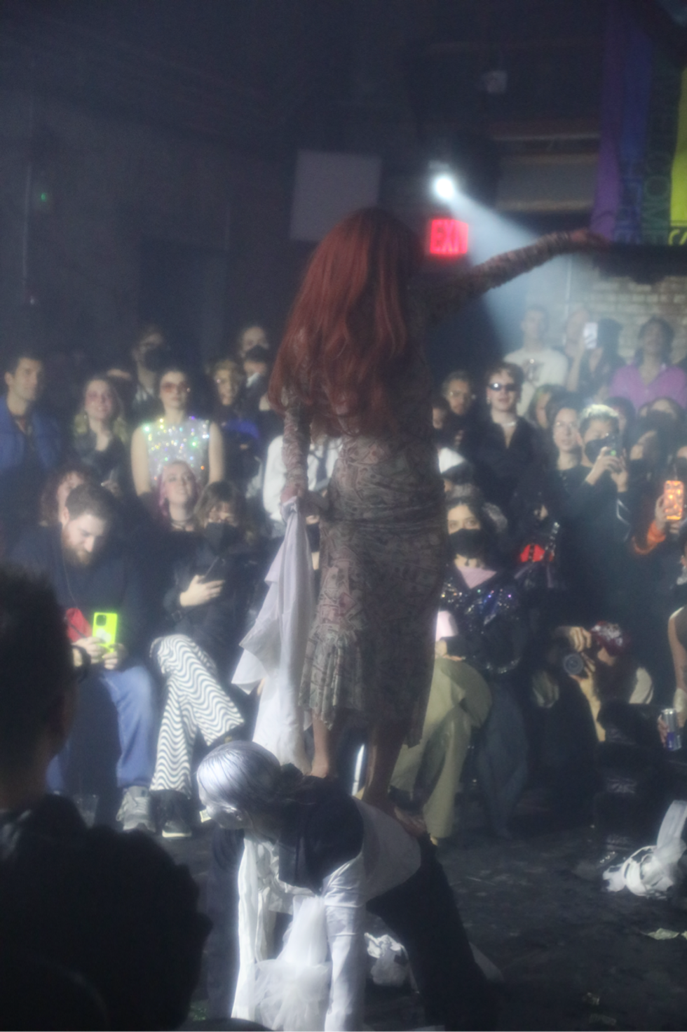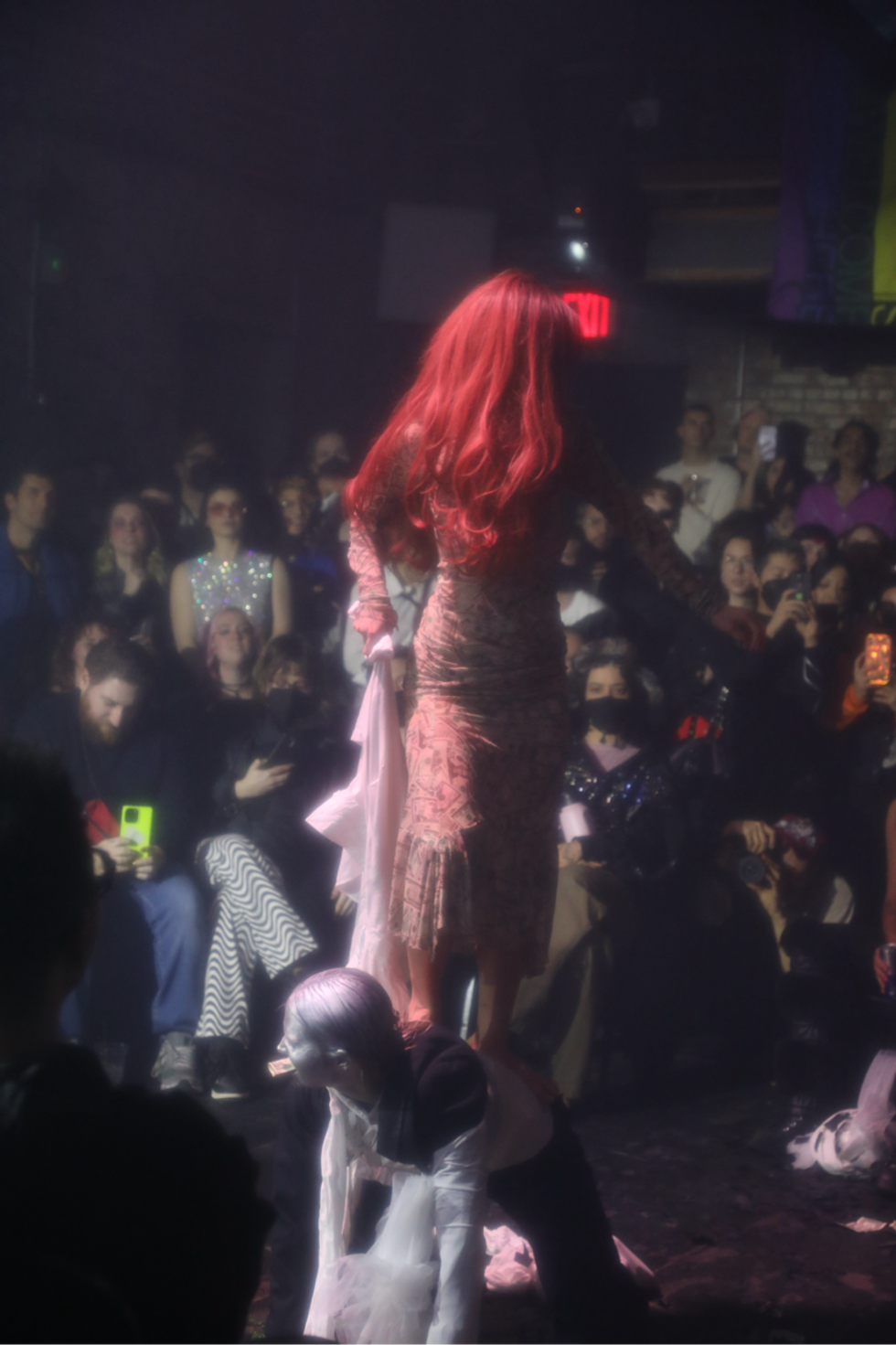 Outside of lip-syncing, the Hole Pics cast included dancers, musicians and performance artists. The duo EXULT interpreted the music as lovemaking and conflict and all the emotions in between as they danced and writhed in the middle of the audience. Clea did a live cover of “Is It Cold in the Water?” And Buffy, whose work often explores biological substances, was covered in slime. “It felt fitting to be able to have a monstrous beautiful ethereal birth for a Sophie tribute,” Buffy says. “As queer and trans people, we often experience a hunger for touch and physical connectivity.”