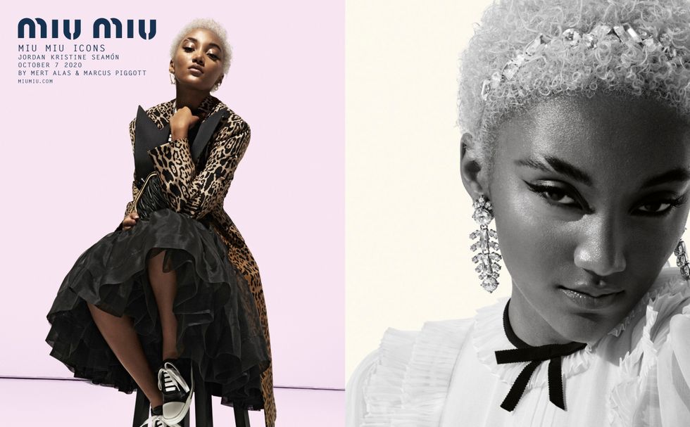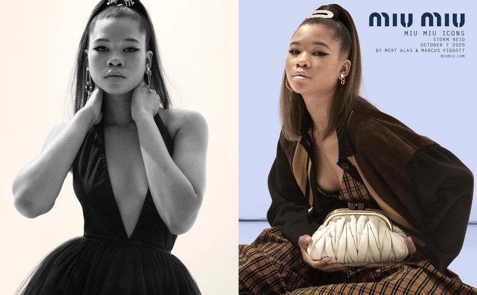 Miuccia Prada hand-selected seven legendary women to front Miu Miu's holiday campaign, appropriately tiled, "Miu Miu Icons." In the mix is actress, model and director Chloë Sevigny, Oscar-winner Kim Basinger, English actress Raffey Cassidy, and Chinese model, actress and former ballet dancer Du Juan, each of whom have previously appeared in Miu Miu campaigns. Additionally, Euphoria actress Storm Reid, who debuted on the runway in March at Miu Miu's Fall 2020 presentation, The Crown actress Emma Corrin, and singer-songwriter and actress Jordan Kristine Seamón who appears in We Are Who We Are alongside Sevigny, make their debut.