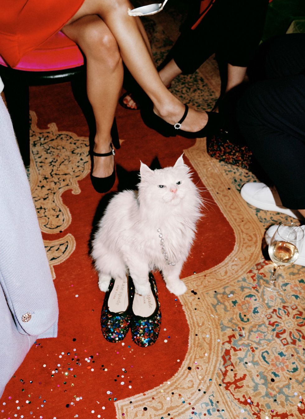 Kate Spade's holiday campaign (and video) captures those dearly missed, candid moments of celebration. Centered around a dinner table, each image showcases the brand's standout accessories. A few handbags casually rest on the table between desserts, while the label's glossy domino-shaped clutch finds itself lost in a fruit bowl. But the main event is a big, fluffy white cat, who manages to weave among the guests and show off Kate Spade's best seasonal accessories while they're distracted by conversation and decadent meals.