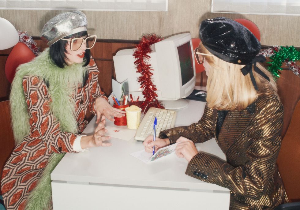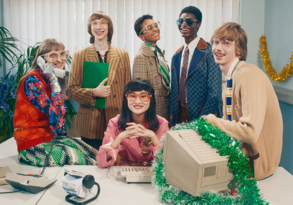 Missing your office holiday parties this season? Gucci's got you covered. This season, Alessandro Michele enlisted Mark Peckmezian and Akinola Davies, Jr. to take the brand's "Gucci Gift Giving" campaign to the '90s. Through a vintage filter, office workers await a disco-themed Christmas party and set up decorations — and when the clock hits five, champagne comes out and confetti fills the air. Clad in head-to-toe Gucci — as well as it's latest gifts, like sequined loafers, gloves and Marmont bags — the staff dance, exchange presents, and sing karaoke to a Yazoo soundtrack with pure delight that only the holidays can bring. Check out the video here.