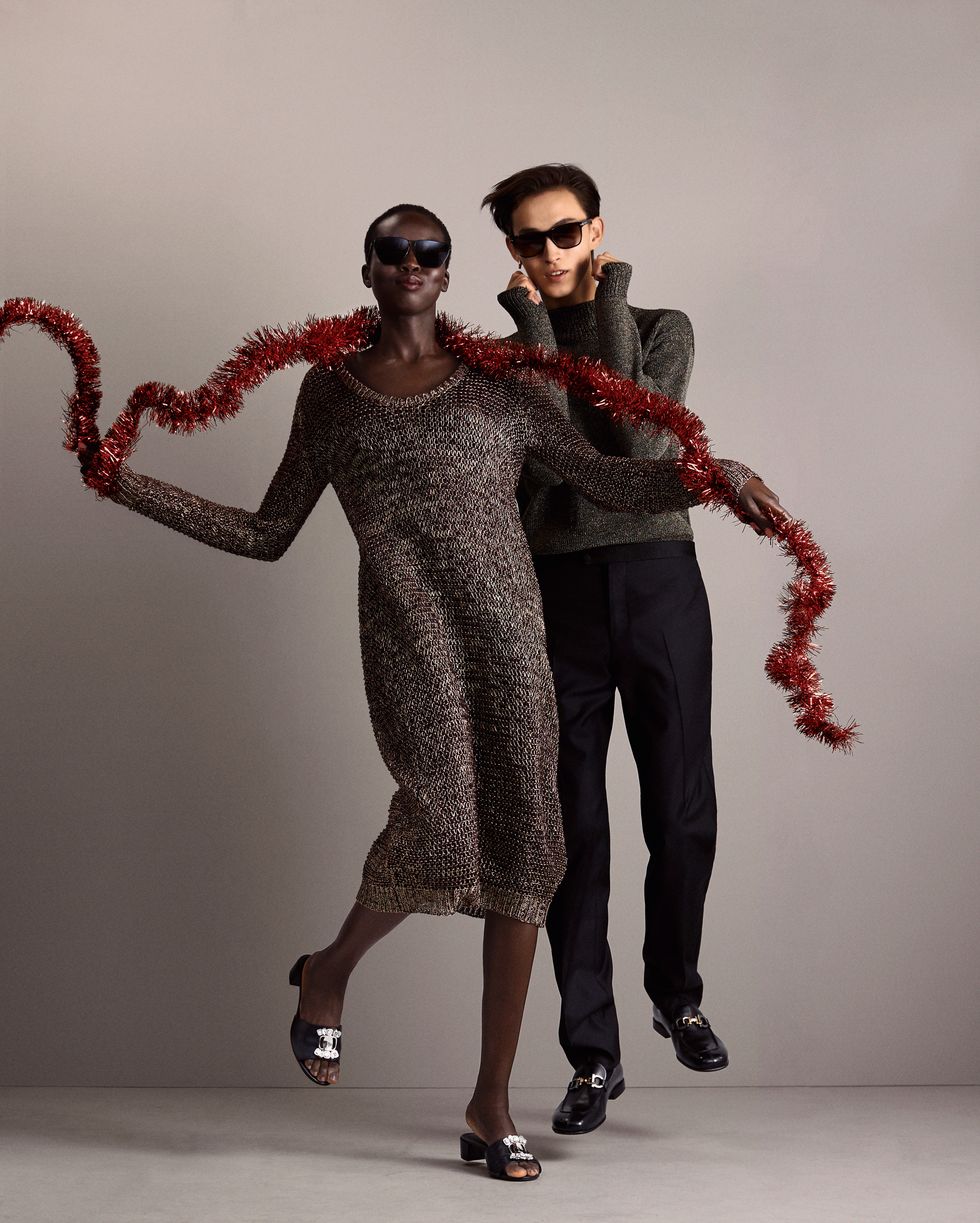 Ferragamo is "Unwrapping Joy" with its new holiday campaign. Against blank backdrops, a diverse cast plays with tinsel, twinkling lights and artificial snow to showcase the tradition of gathering with loved ones this time of year. Accentuating the shots are an array of gifts made to touch people's hearts and be worn for years to come.