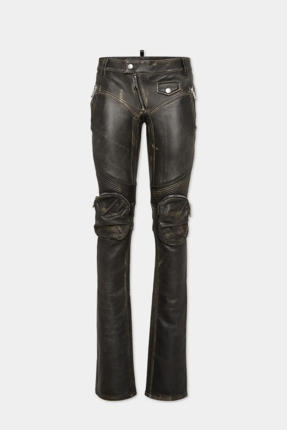 Get the Distressed Leather Biker Pants via Dsquared2.