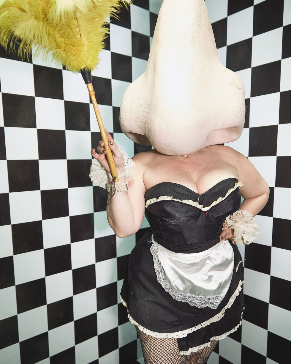 As a blue-skinned Marie Antoinette, LadyFag guides us down the checkerboard rabbit hole into an opulent surrealist fantasy that makes even Gaspar Noe seem tame. Featuring dancing poodle people, baby bottle poppers, a French maid who is nothing but nose, and Christeene as a deranged midwife delivering LadyFag's pearl-headed baby, the video is a delightfully insane nod to the theme of this month's edition of Holy Mountain, "Poison & Pearls," with a campy dinner party fated for melodramatic disaster.