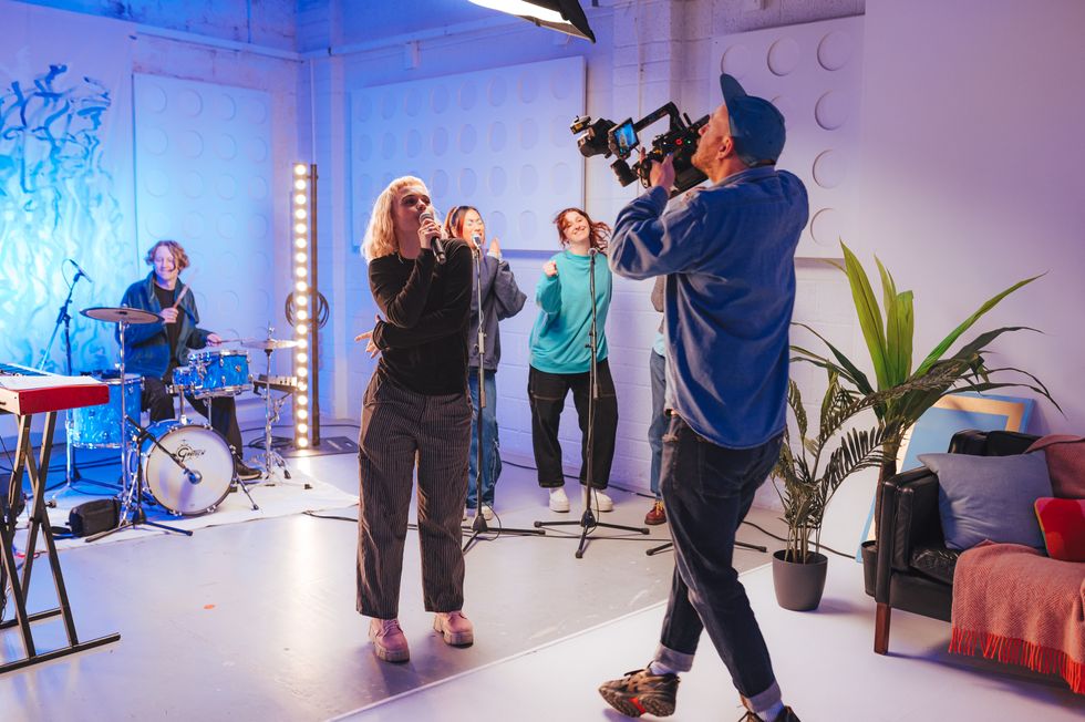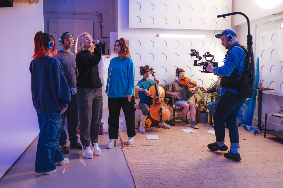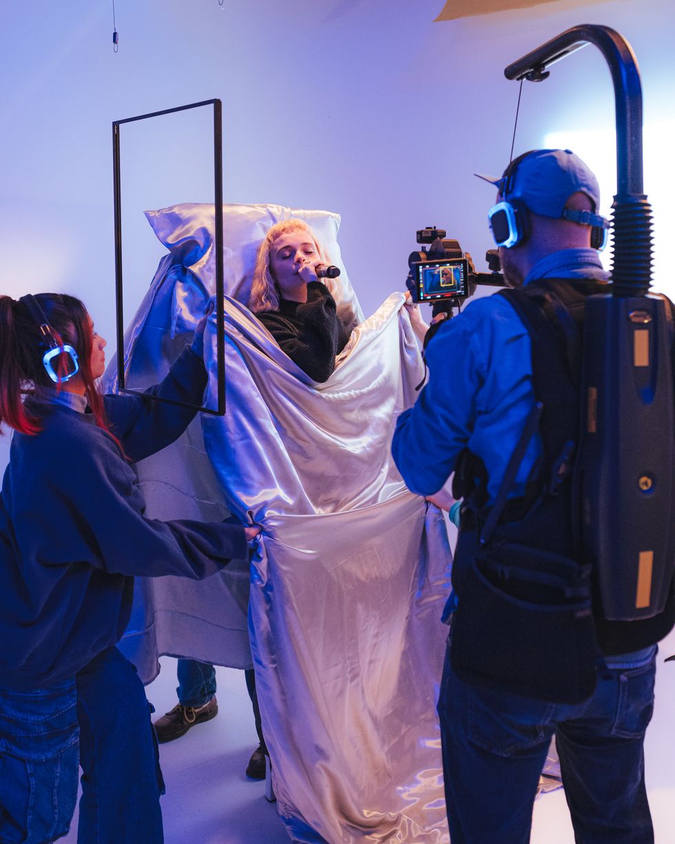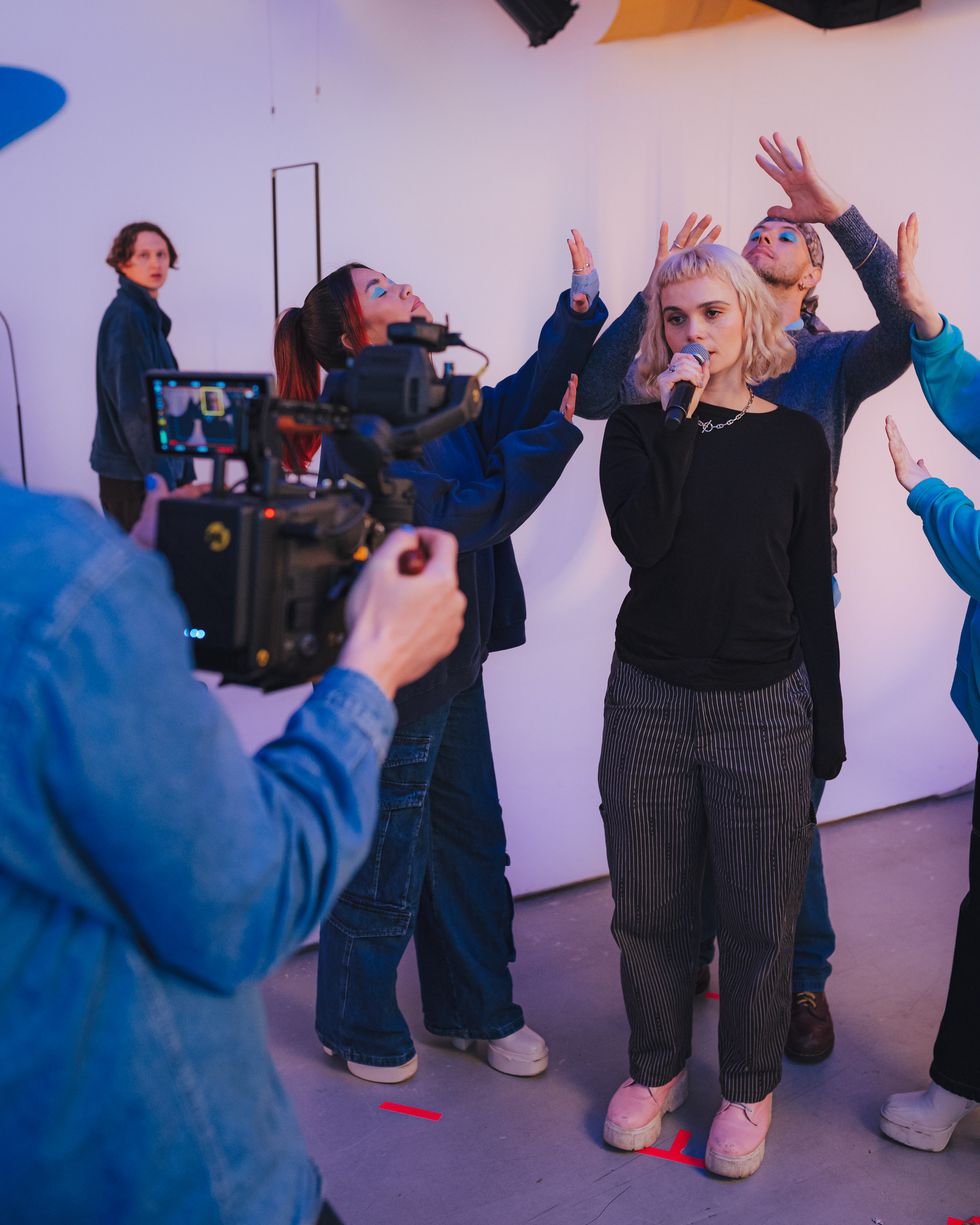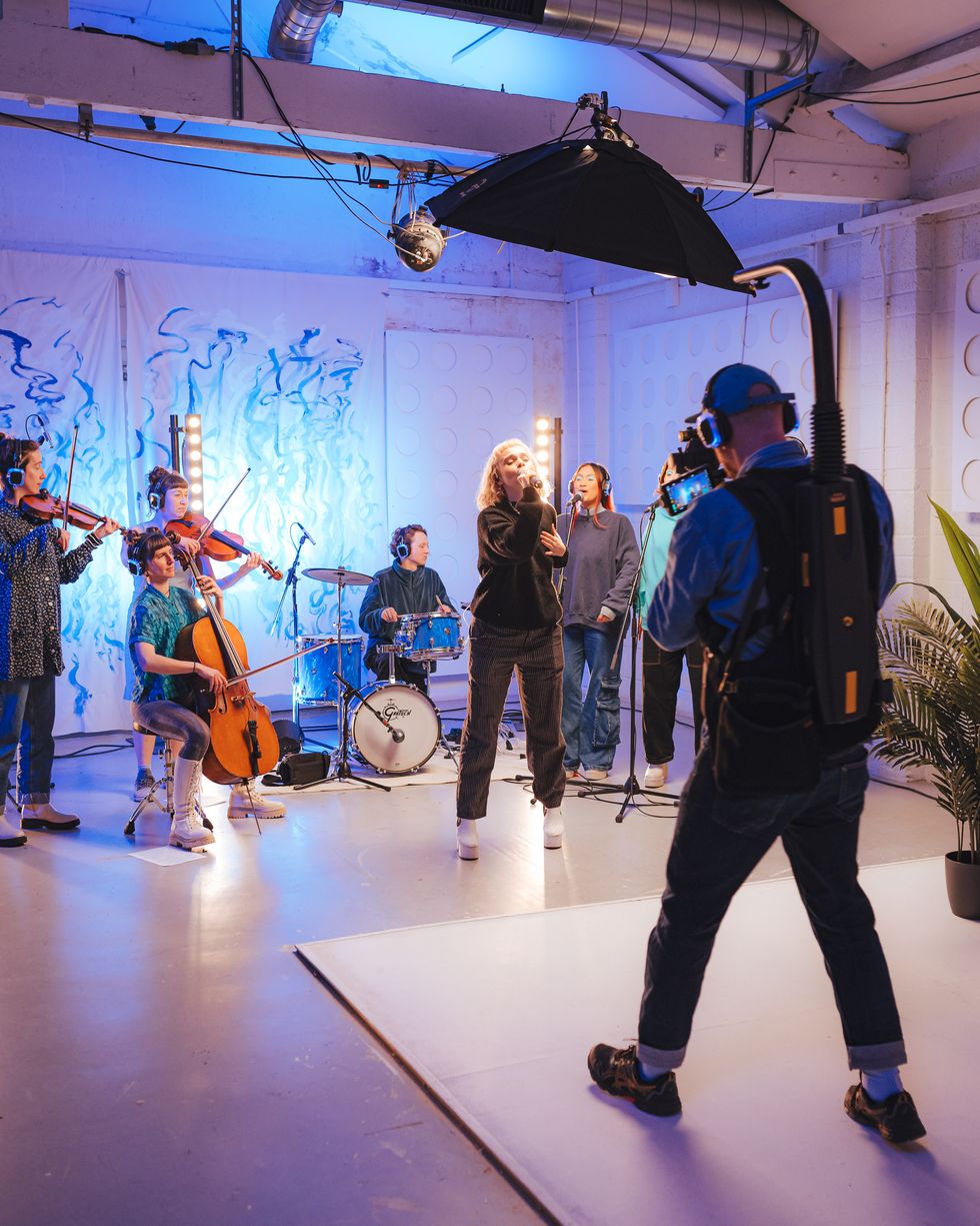 The video is like a behind-the-scenes video that turns into my dream gig. I wanted to shine a light on the team that has been with me on the journey and given me hope (though there are many more not in the video!). A blue light is cast over all of us and everyone is dressed in blue, like we’re submerged in the ocean. There are little nuggets of references to previous work, too. It was amazing to work with my sister Amy Wellington, who came up with the concept, and long-time collaborator Jack Lilley as co-directors. This video was made possible by Sound and Music. Together, I think we conveyed the sentiment of the song together in quite a unique way.